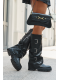 Model se vyznačuje efektním ohrnovaným svrškem, který dodává botám originální charakter. Tři stříbrné přezky s pásky jsou dekorativním detailem, který upoutá pozornost a přidává výrazný, moderní styl.