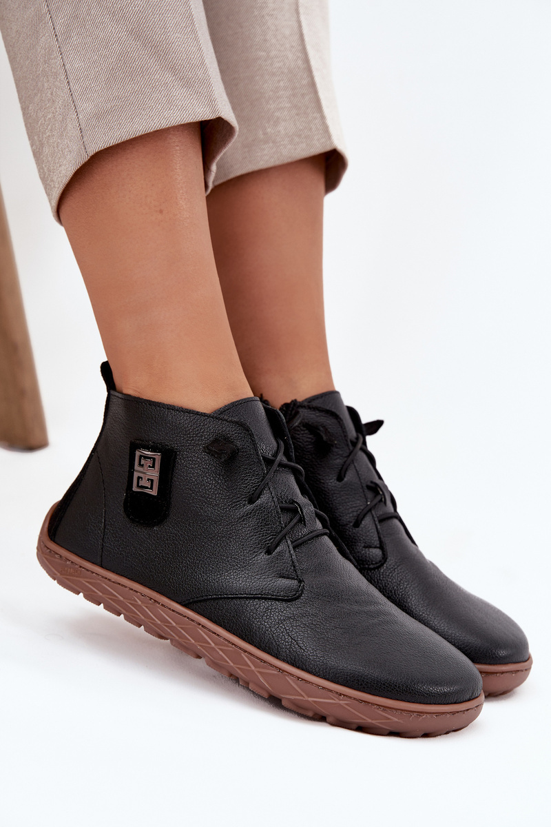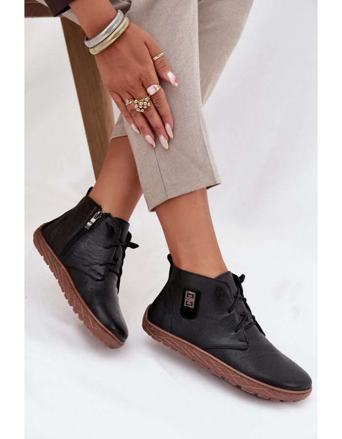 Dámské kožené barefoot polobotky Zazoo jsou navržené pro přirozený pohyb chodidla a pohodlné nošení během celého dne. Kožený svršek působí kvalitně a dobře se přizpůsobí noze, zatímco ozdobný detail dodá botám jemný, stylový akcent. Černá barva je nadčasová a snadno kombinovatelná, takže boty využijete do města, do práce i na volný čas.