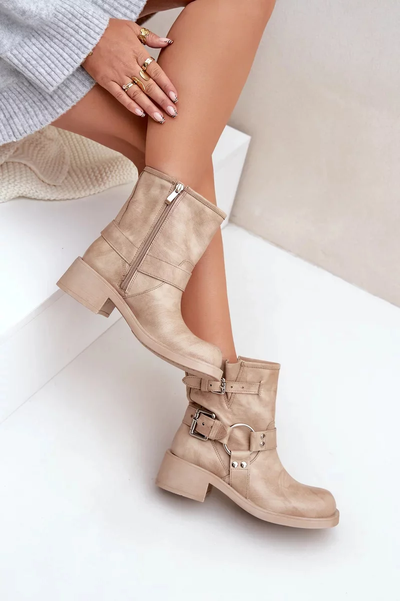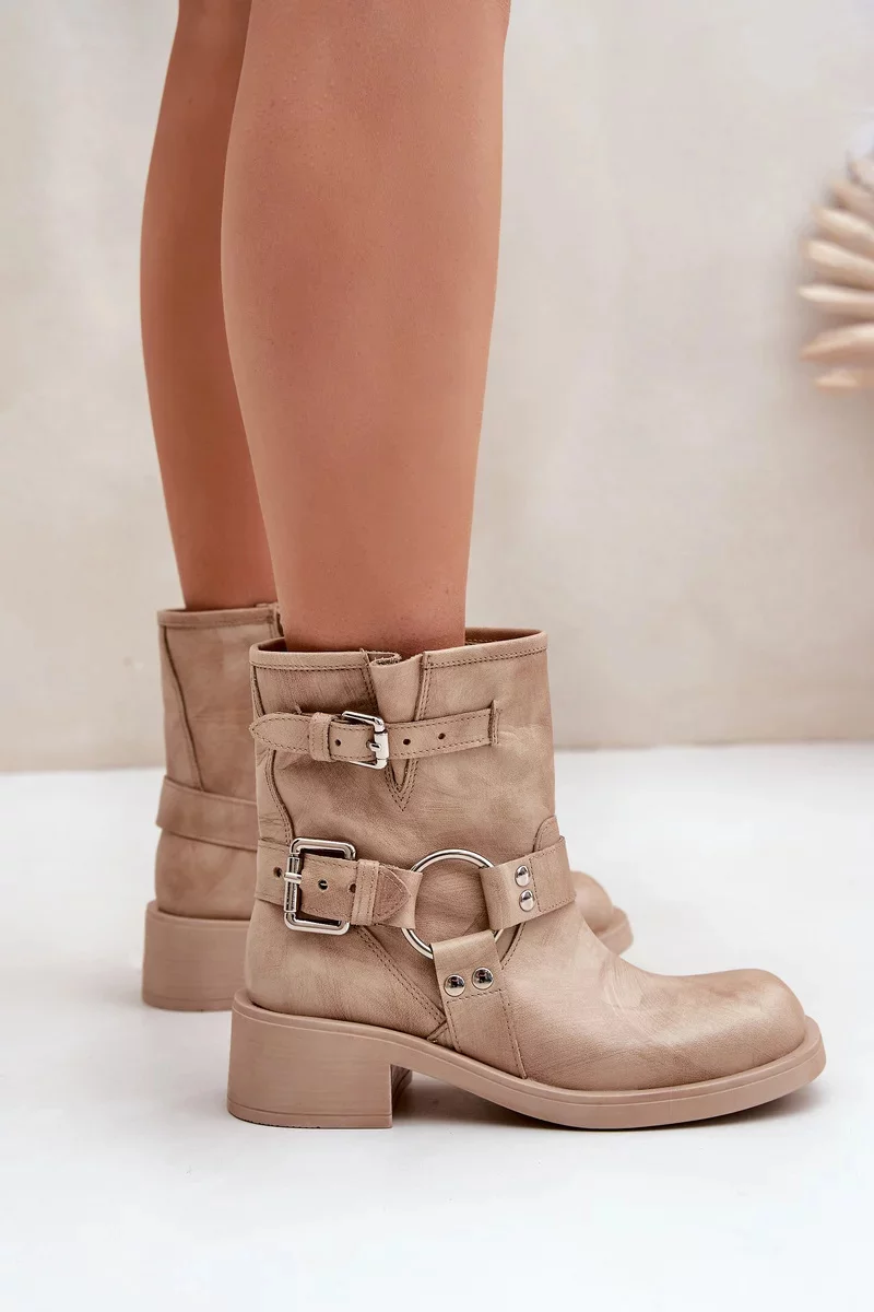 Kotníkové boty vyrobené z přírodní kůže jsou ideální volbou pro každou příležitost. Zabudované na nízkém podpatku, poskytují pohodlí a stabilitu při chůzi. Zaoblené špičky dodávají jemný charakter. Model zapínaný na zámek, což usnadňuje oblékání. Svršek zdobený efektní kombinací pásků, které dodávají stylový akcent. Tyto boty se skvěle hodí do každodenních stylizací, spojují eleganci s pohodlím. Při výběru velikosti se prosím řiďte tabulkou velikostí.