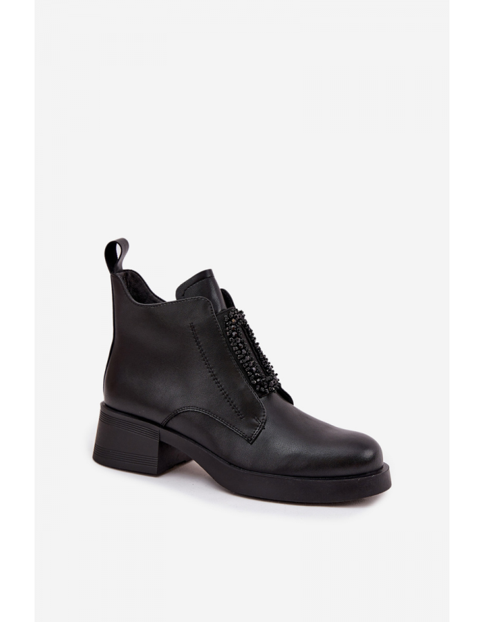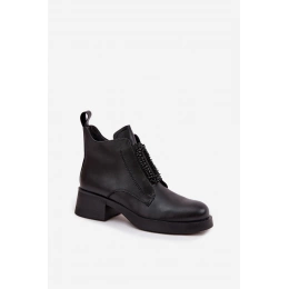 Botki damskie wykonane z naturalnej skóry to idealny wybór dla kobiet ceniących styl i wygodę. Model posiada niski krój cholewki, dzięki czemu świetnie komponuje się z różnymi fasonami spodni i sukienek. Stabilny obcas typu klocek zapewnia komfort podczas chodzenia, a delikatne ocieplenie sprawia, że buty doskonale sprawdzą się w chłodniejsze dni. Botki zapinane są na zamek, co ułatwia ich zakładanie i zdejmowanie. Ozdoba z koralików z przodu dodaje im subtelnego, kobiecego charakteru. To uniwersalny model, który doskonale dopełni zarówno codzienne, jak i bardziej eleganckie stylizacje. Przy wyborze rozmiaru prosimy sugerować się tabelą rozmiarów.