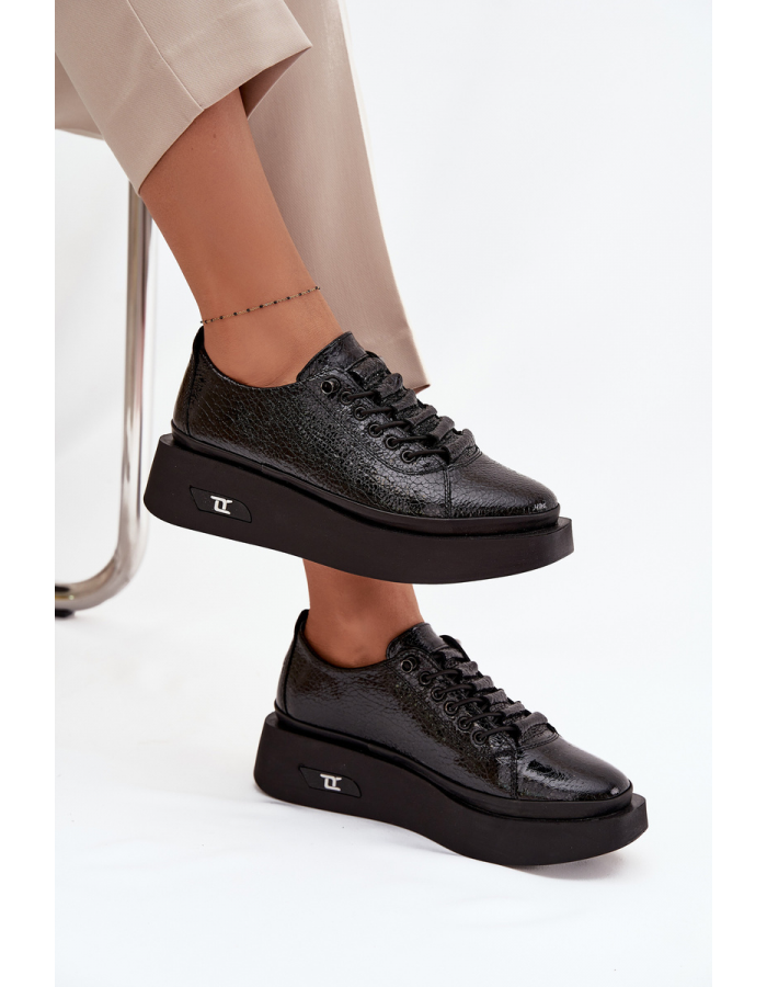 Dámské kožené lakované polobotky na platformě Artiker jsou výrazným modelem, který kombinuje elegantní lesklý povrch s moderní platformou. Lakovaná kůže dodá outfitu upravený vzhled a platforma zároveň přináší stabilní došlap i výraznější siluetu vhodnou do města i do práce. Černá barva je nadčasová a snadno kombinovatelná, takže boty využijete k džínům, kalhotám i šatům, kdykoli chcete outfit trochu zvýraznit.