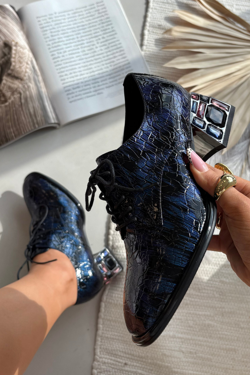 Dámské kožené lakované polobotky Artiker upoutají lesklým povrchem, elegantním podpatkem a krystalky, které dodají botám výraznější, slavnostnější detail. Jsou ideální ve chvílích, kdy chcete působit upraveně, ale zároveň preferujete polobotkový střih a stabilnější došlap. Tmavě modrá barva působí vkusně a nadčasově a skvěle se kombinuje s šaty, sukní i elegantními kalhotami.