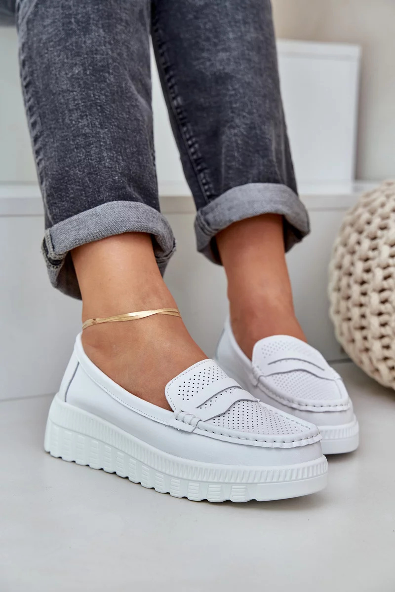 Stylové bílé mokasíny Elanindel z kvalitní kůže kombinují komfort s moderním designem. Platforma a klínek poskytují stabilitu a pohodlí po celý den, zatímco měkký materiál zajišťuje komfortní nošení. Ideální volba pro ženy, které chtějí spojit eleganci s módním vzhledem.