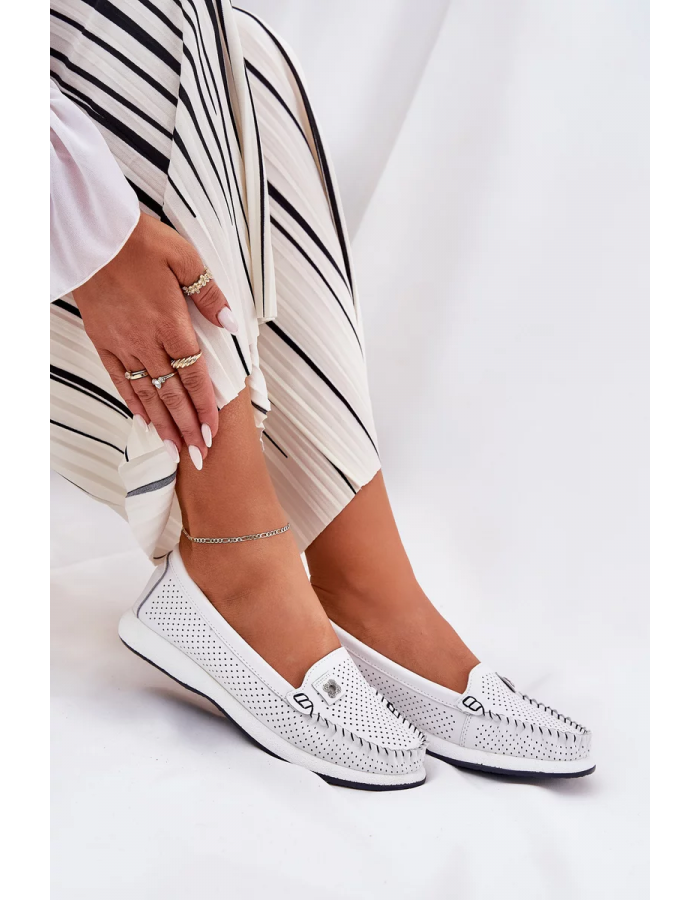 Elegantní bílé mokasíny S.Barski z kvalitní kůže kombinují pohodlí s nadčasovým designem. Plochá podrážka a měkký materiál zajišťují komfort po celý den, zatímco jednoduchý a čistý vzhled dodává botám univerzální styl vhodný k různým outfitům.