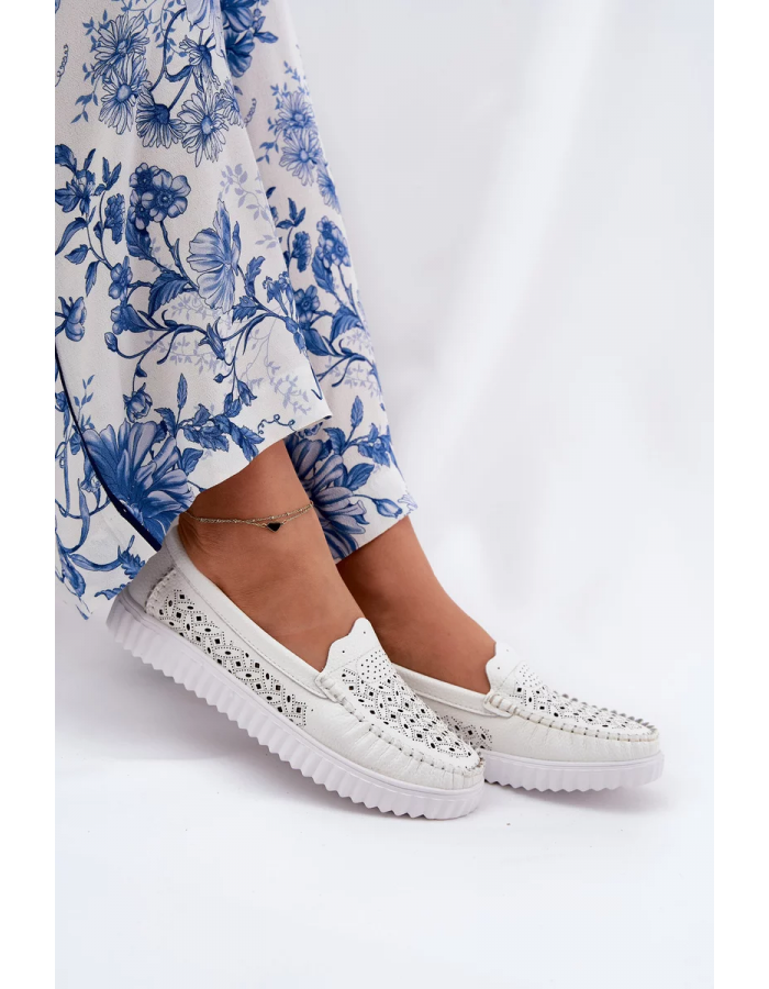 Elegantní bílé mokasíny Vinceza z kvalitní kůže kombinují pohodlí s nadčasovým designem. Perforovaný vzor zajišťuje prodyšnost, zatímco měkký materiál a plochá podrážka poskytují komfort po celý den. Ideální volba pro každodenní nošení i lehce formální příležitosti.