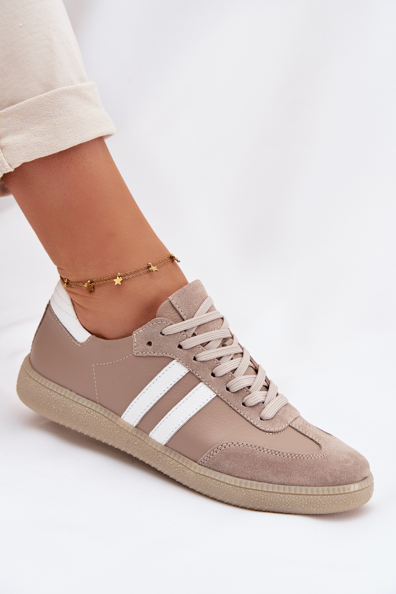 Dámské nízké tenisky Zazoo v tmavě béžovém provedení jsou elegantní a nadčasovou volbou pro každodenní nošení. Svršek z pravé kůže poskytuje vysoký komfort, dlouhou životnost a přirozené přizpůsobení noze. Tmavě béžový odstín působí decentně a snadno se kombinuje s městskými i volnočasovými outfity.