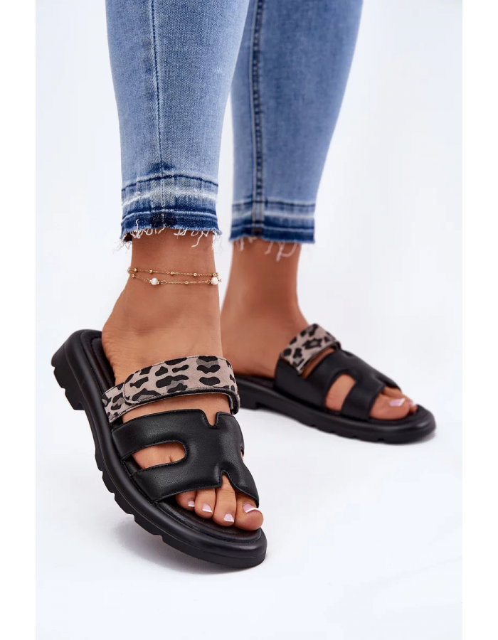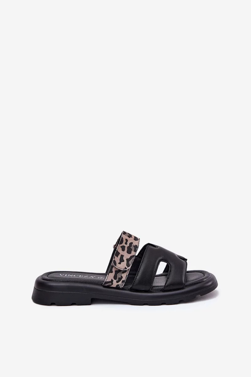 Elegantní dámské pantofle Vinceza v černém provedení s panterím vzorem nabízejí spojení komfortu, stylu a praktičnosti. Kvalitní kožený svršek zajišťuje odolnost a příjemný pocit při nošení, zatímco pásek na suchý zip umožňuje snadné nazouvání a optimální přizpůsobení chodidlu. Panterí vzor dodává modelu originální módní vzhled, který oživí jednoduché i výrazné outfity.
