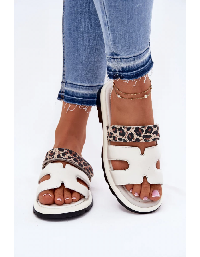 Dámské pantofle Vinceza ve světle béžovém provedení se stylovým panteřím vzorem jsou kombinací komfortu a módního designu. Kožený svršek zajišťuje kvalitní a odolnou konstrukci, zatímco suchý zip umožňuje snadné nazouvání a individuální přizpůsobení. Panteří vzor dodává obuvi originální vzhled, který oživí letní i volnočasové outfity.