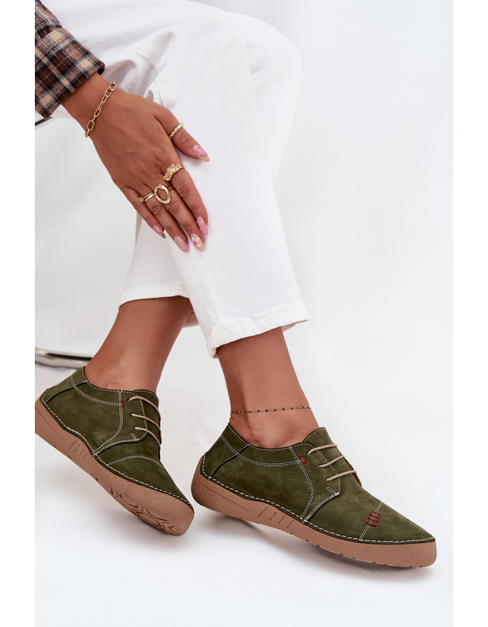 Dámské kožené polobotky Artiker 57C2112 zaujmou dekorativním prošitím, které botám dodává výraznější, ale stále elegantní vzhled. Jsou vhodné pro každodenní nošení do města i do práce, když chcete pohodlné boty a zároveň originální barevný detail. Zelená barva outfit příjemně oživí a dobře se kombinuje s neutrálními i přírodními tóny, například s béžovou, černou nebo džínovinou.
