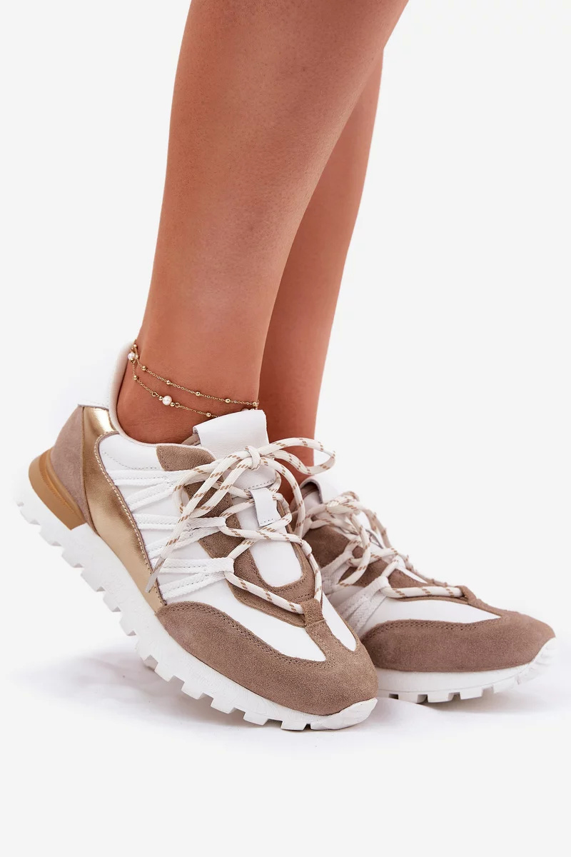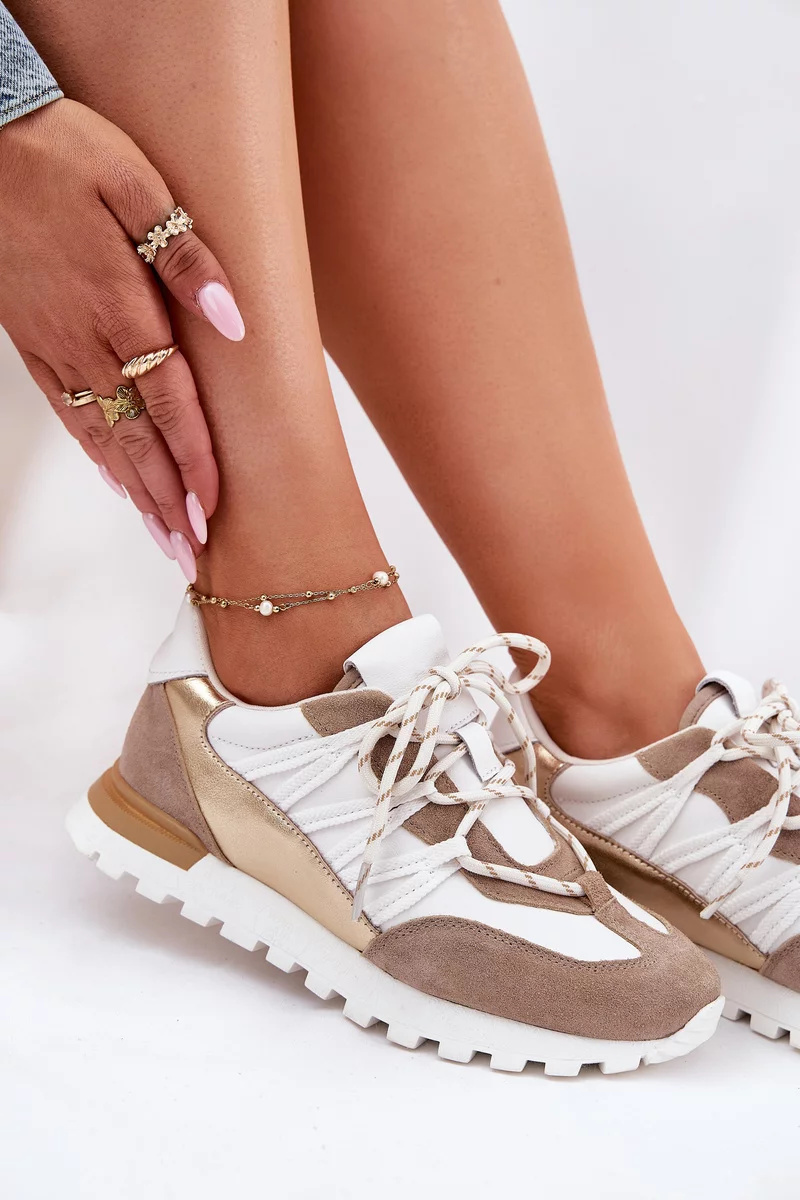 Dámské kožené sneakers polobotky Artiker jsou pohodlnou volbou pro každodenní nošení, když chcete sportovně-městský styl a zároveň upravený vzhled. Kožený svršek působí kvalitně a dobře se přizpůsobí noze, zatímco béžovo-zlaté provedení dodá outfitu jemný, elegantní akcent. Boty se snadno kombinují s džínami, kalhotami i šaty a využijete je do města, do práce i na volný čas.