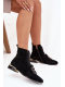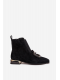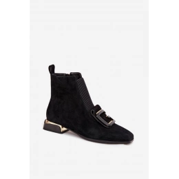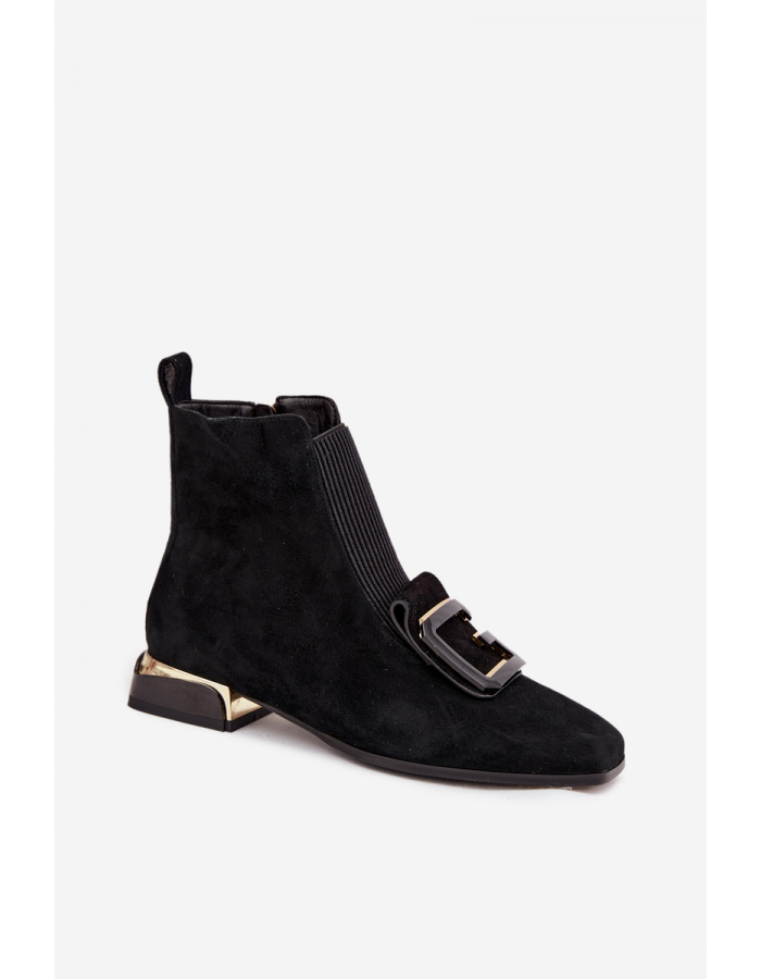 Dámské kožené semišové kotníkové boty na nízkém podpatku – černé Velikost: 38