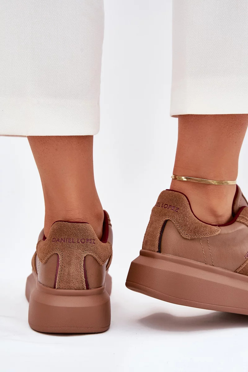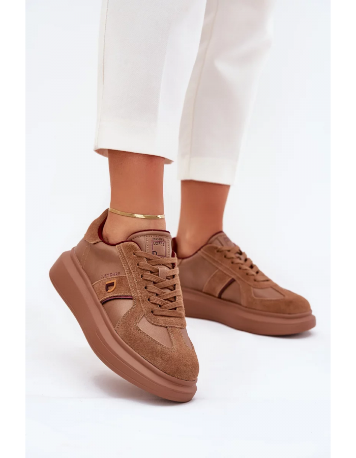 Dámské sneakers Daniel Lopez Just Dare v hnědém provedení jsou pohodlným městským modelem, který kombinuje sportovní styl s elegantnějším dojmem koženého svršku. Platforma dodá botám moderní siluetu, opticky prodlouží nohy a zároveň poskytne stabilní došlap při chůzi. Hnědá barva působí nadčasově a snadno se kombinuje s džínovinou, béžovou, černou i krémovými odstíny, takže boty využijete na běžné nošení do města i na cestování. Díky univerzálnímu vzhledu se hodí jak k ležérním outfitům, tak k jednodušším šatům nebo sukním.