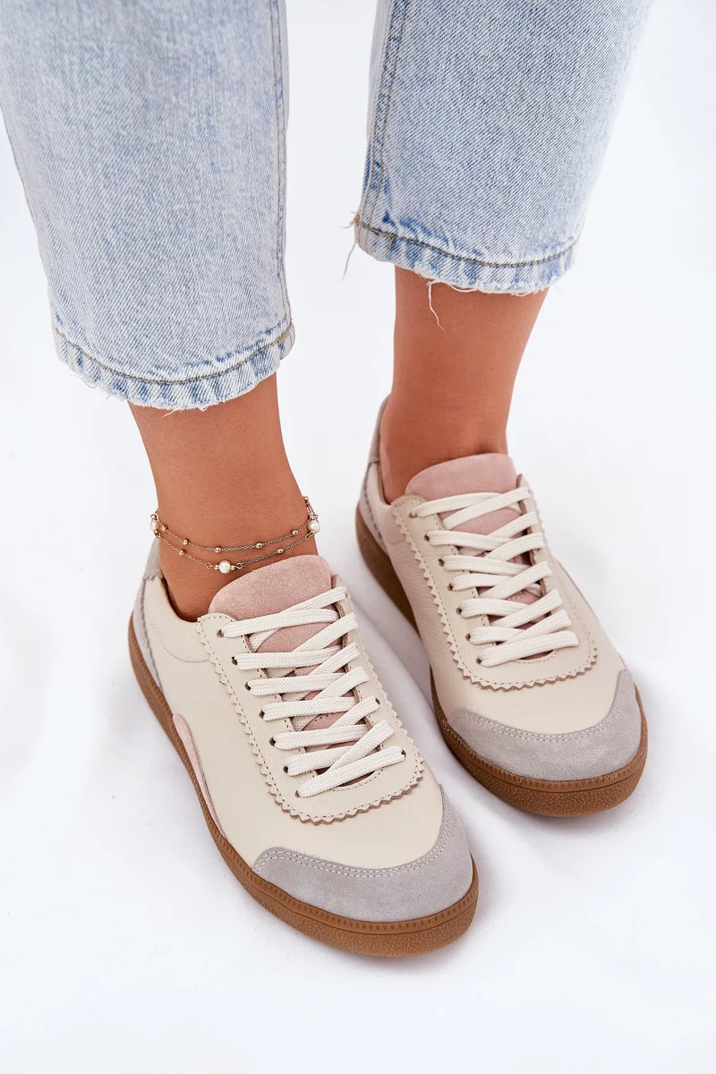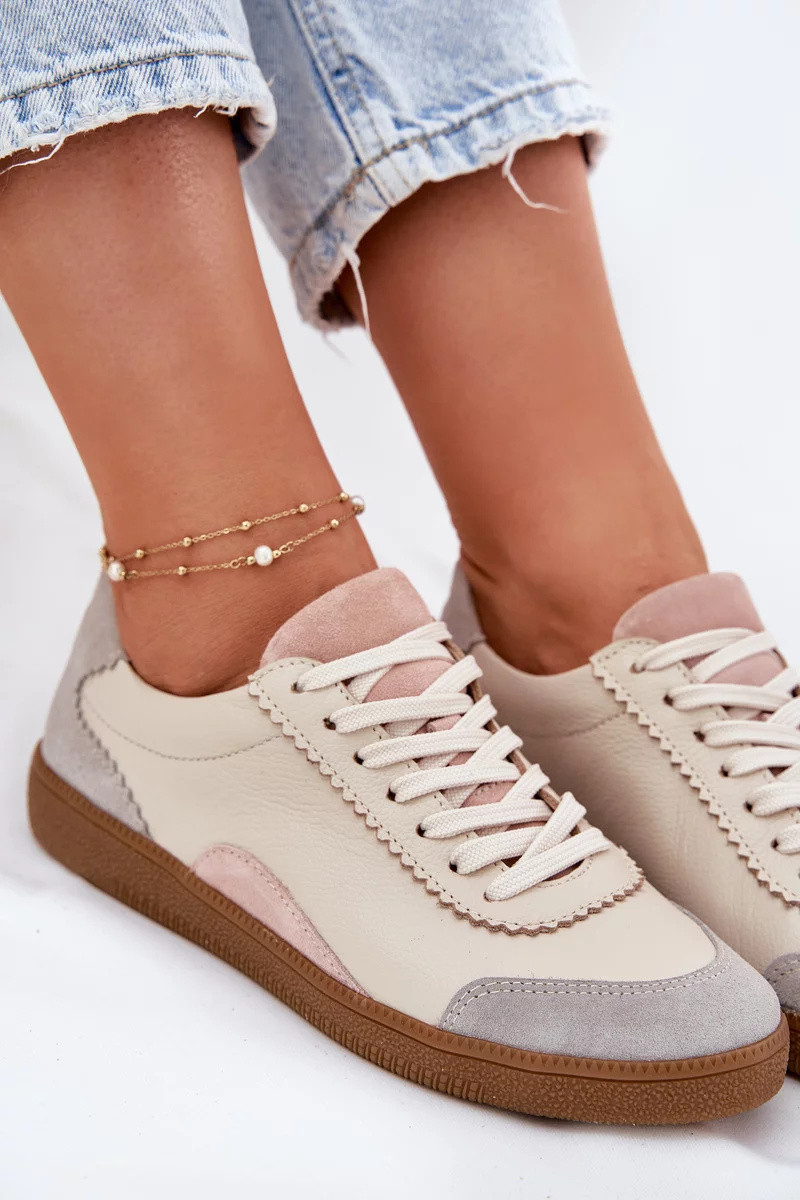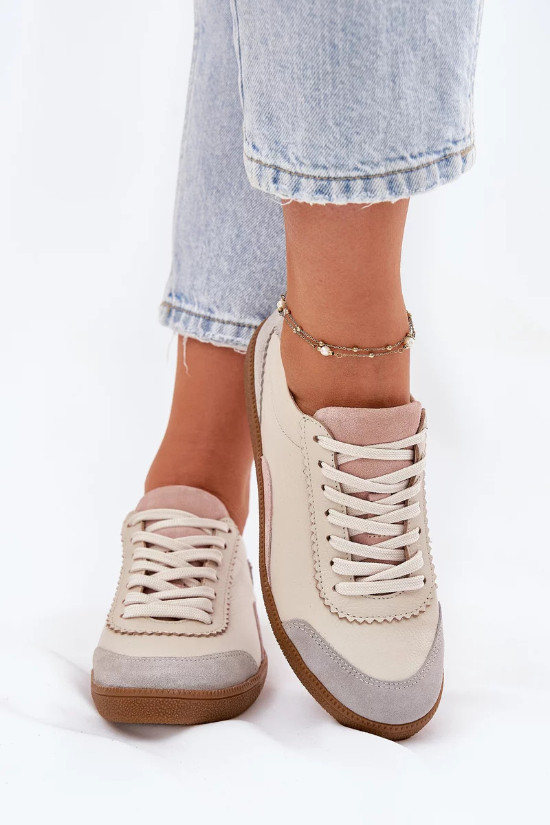 Béžové kožené sneakersy skvěle doplní outfit v přírodních a světlých tónech – například s krémovými kalhotami, džínami nebo lehkými šaty.