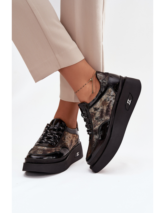 Dámské kožené šněrovací polobotky na platformě Artiker jsou moderní volbou pro každodenní nošení, když chcete pohodlí a zároveň výraznější design. Šněrování umožní lepší přizpůsobení noze a platforma dodá botám stabilní došlap i lehké optické prodloužení postavy. Černo-zlaté provedení působí elegantně a snadno oživí jednoduchý outfit k džínům, kalhotám i šatům.