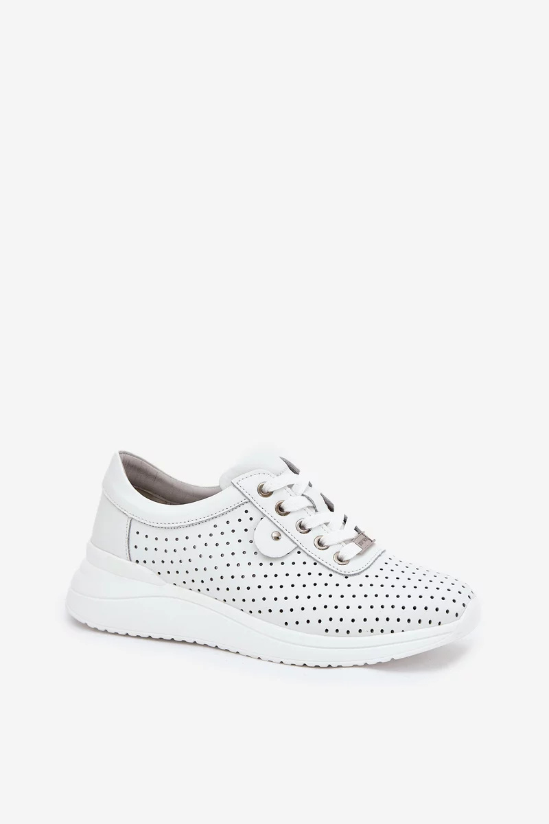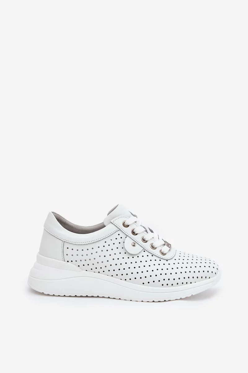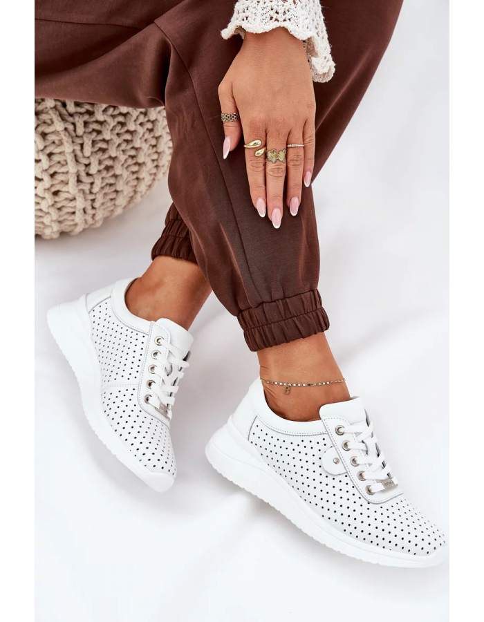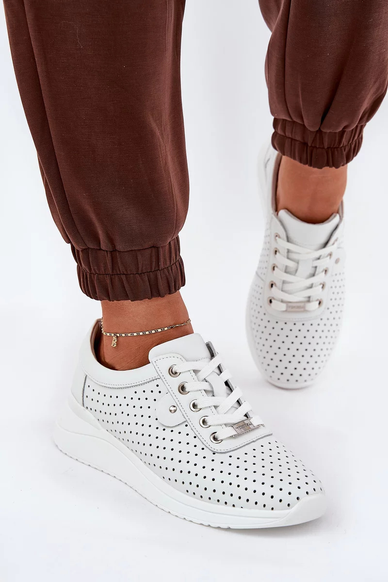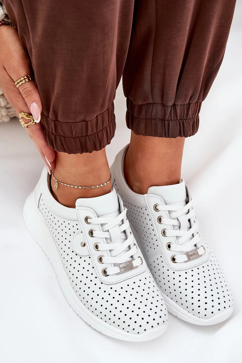 Dámské sportovní boty Vinceza jsou moderní sneakersy v čistě bílé barvě s kvalitním koženým svrškem, který zajišťuje odolnost i elegantní vzhled. Díky platformové podrážce nabízejí stabilní a pohodlný došlap, který oceníte při celodenním nošení. Boty mají klasické šněrování, které umožňuje jejich přesné přizpůsobení noze. Měkká stélka dodává komfort i při delších procházkách, zatímco zaoblená špička podporuje přirozený pohyb chodidla.