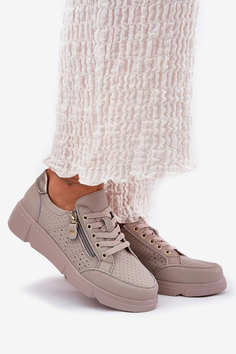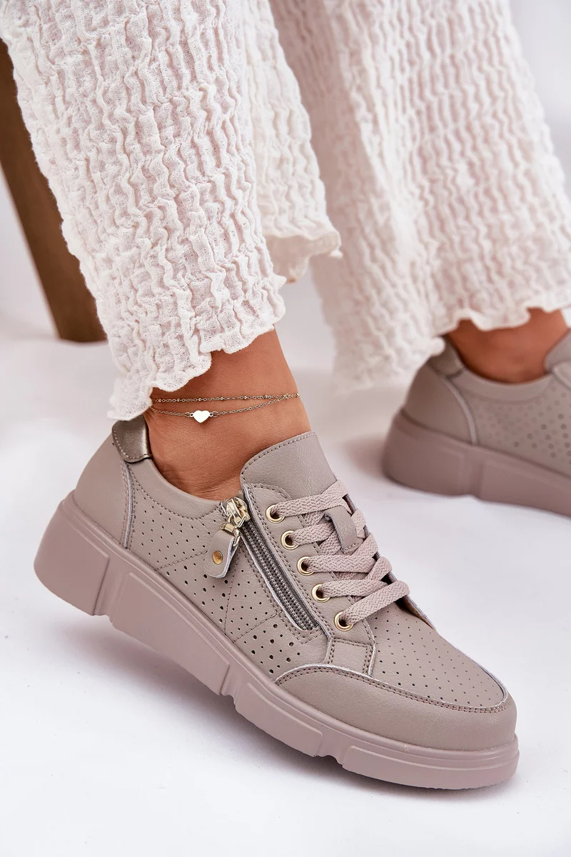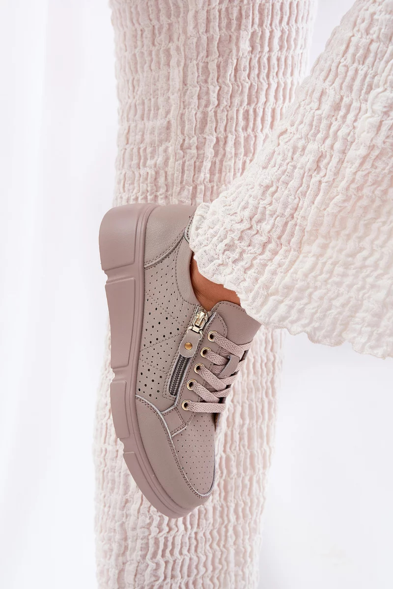 Dámské sportovní sneakersy Vinceza v tmavě béžovém provedení spojují kvalitní kožené zpracování s praktickými detaily pro každodenní nošení. Platformová podešev dodává obuvi moderní siluetu a zajišťuje stabilní došlap, zatímco boční zip usnadňuje obouvání a zouvání. Tmavě béžová barva působí elegantně a nadčasově, díky čemuž se sneakersy snadno kombinují s městskými i ležérními outfity.