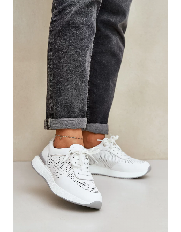 Dámské sportovní sneakersy S.Barski LR51-551 v bílém provedení představují nadčasovou a pohodlnou obuv pro každodenní nošení. Kožený svršek dodává modelu kvalitní vzhled a dlouhou životnost, zatímco čistý design umožňuje snadné kombinování s městskými i volnočasovými outfity. Pohodlný střih zajišťuje komfort po celý den.