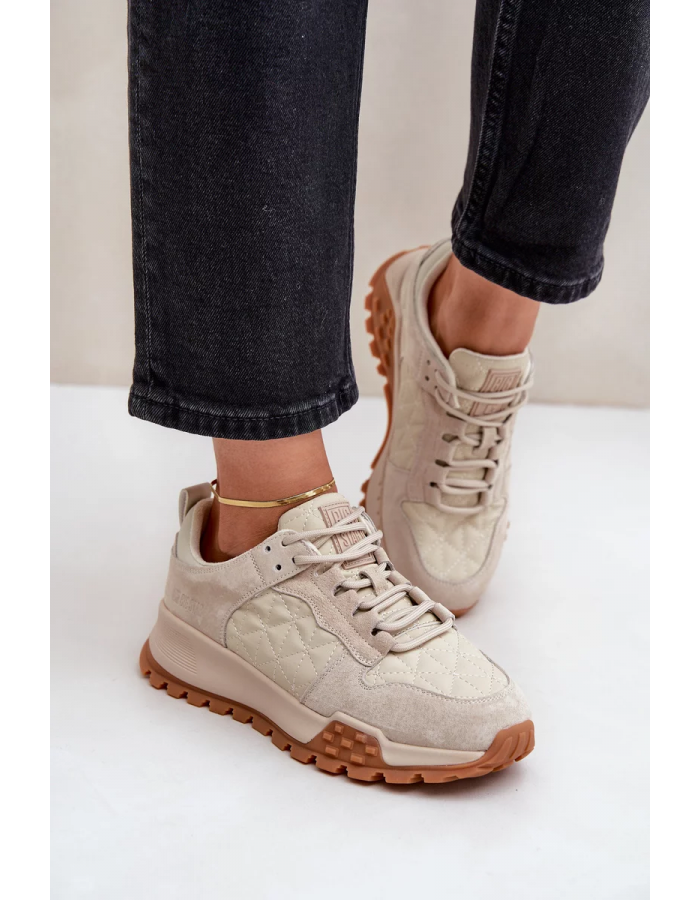 Dámské sportovní boty značky Big Star vyrobené z přírodní kůže. Platforma nejen přidává několik centimetrů výšky, ale také zajišťuje stabilitu a pohodlí při chůzi. Jejich moderní vzhled se dokonale hodí k různým stylům, přináší prvek modernosti a jedinečnosti. Tento model je vybaven vložkou HI POLLY SYSTEM, vyrobenou z recyklovaných materiálů, která je odolná proti oděru, deformacím a efektivně pohlcuje vlhkost. Při výběru velikosti se prosím řiďte tabulkou velikostí.