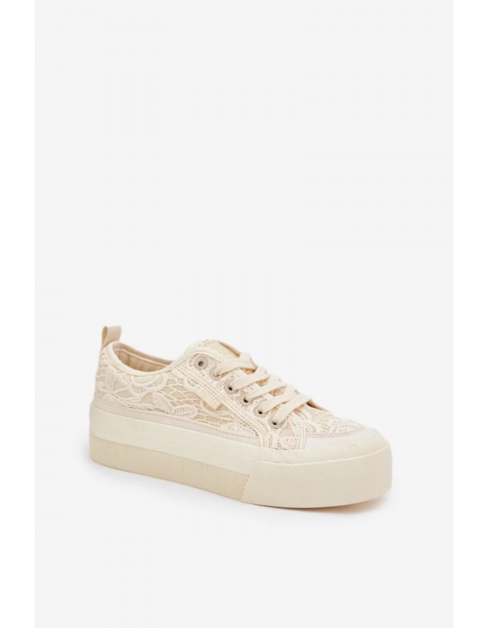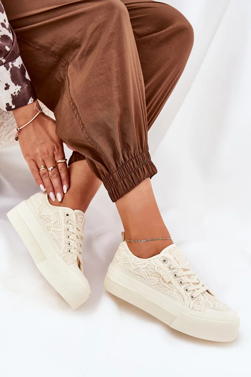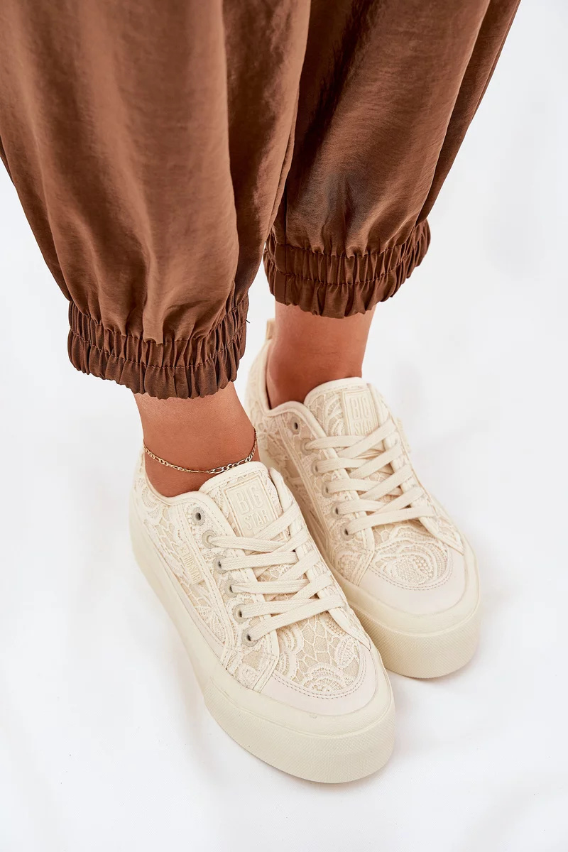 Lehké, vzdušné a ženské – dámské krajkové tenisky Big Star RR274746 v jemném béžovém odstínu jsou ideální volbou pro teplejší dny. Romantický krajkový svršek dodává teniskám elegantní vzhled a dělá z nich skvělý doplněk k šatům i džínám.