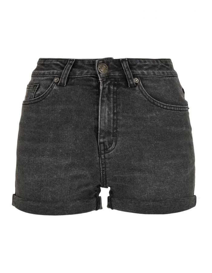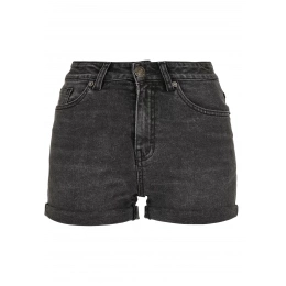 Dámské organické Stretch Denim 5 Pocket Shorts, černé seprané