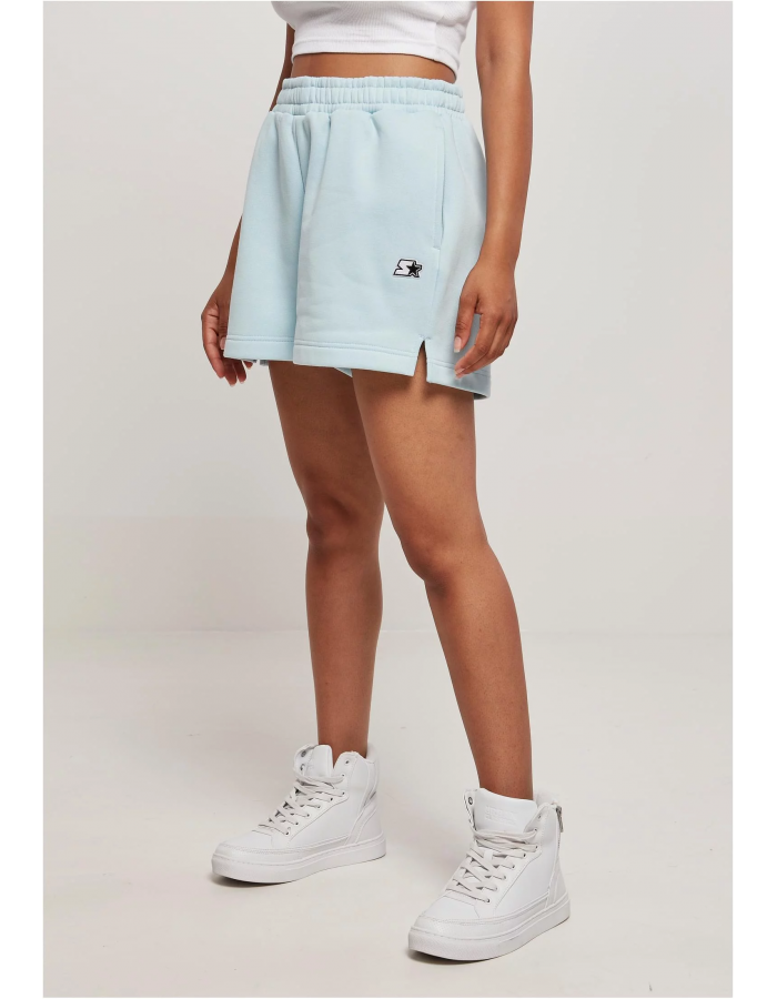 Jednobarevné šortky pro ženy jsou navrženy jako krátké mini v délce a s jemně rozparkovanými nohavicemi. Jejich široký elastický pas a použitý česaný fleecový materiál z nich dělají sportovní a pohodlné společníky a široký volný střih k nim perfektně ladí. Dámské kraťasy jsou navíc vybaveny dvěma bočními kapsami – levou zdobí nášivka Starter s výšivkou.