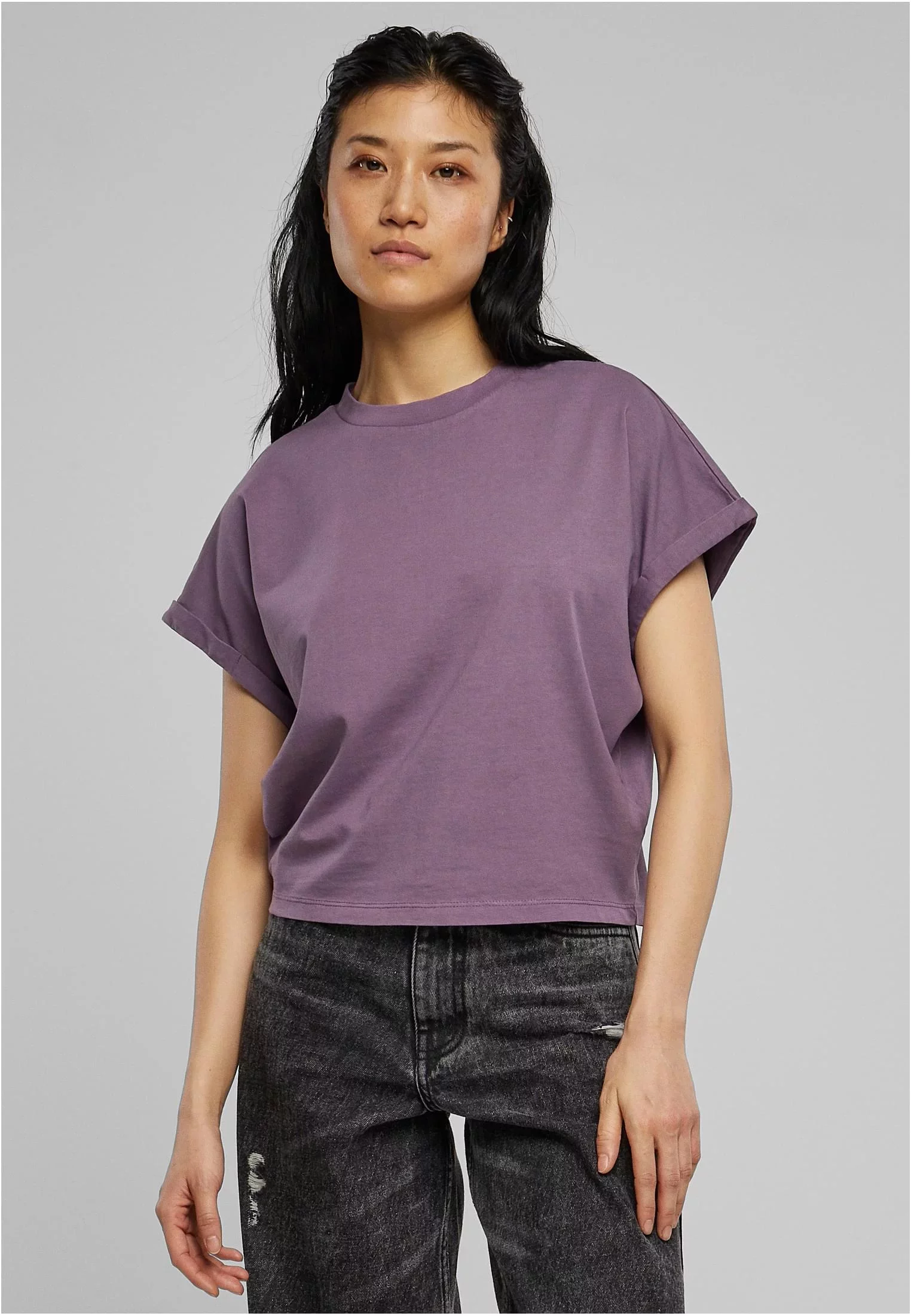 Dámské Krátké Pigmentové Dye Cut On Rukávy Tričko šedofialové