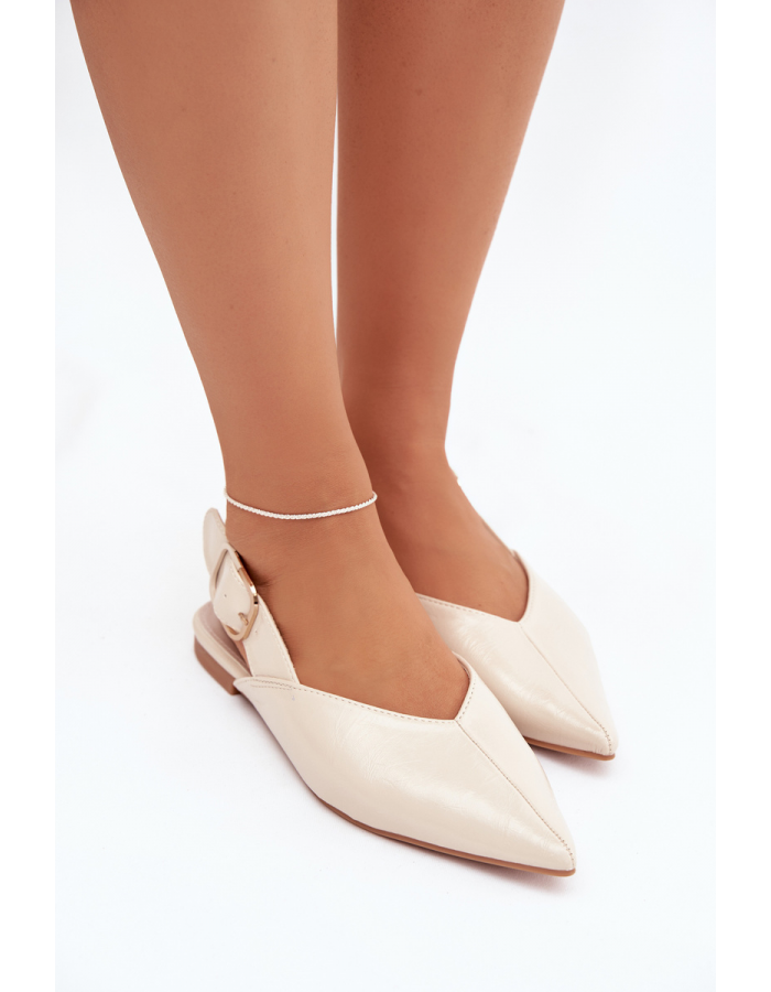 Béžové lakované baleríny Rinalle doporučujeme kombinovat s neutrálními, pastelovými nebo světlými outfity, aby jemný lesk bot vynikl.