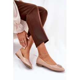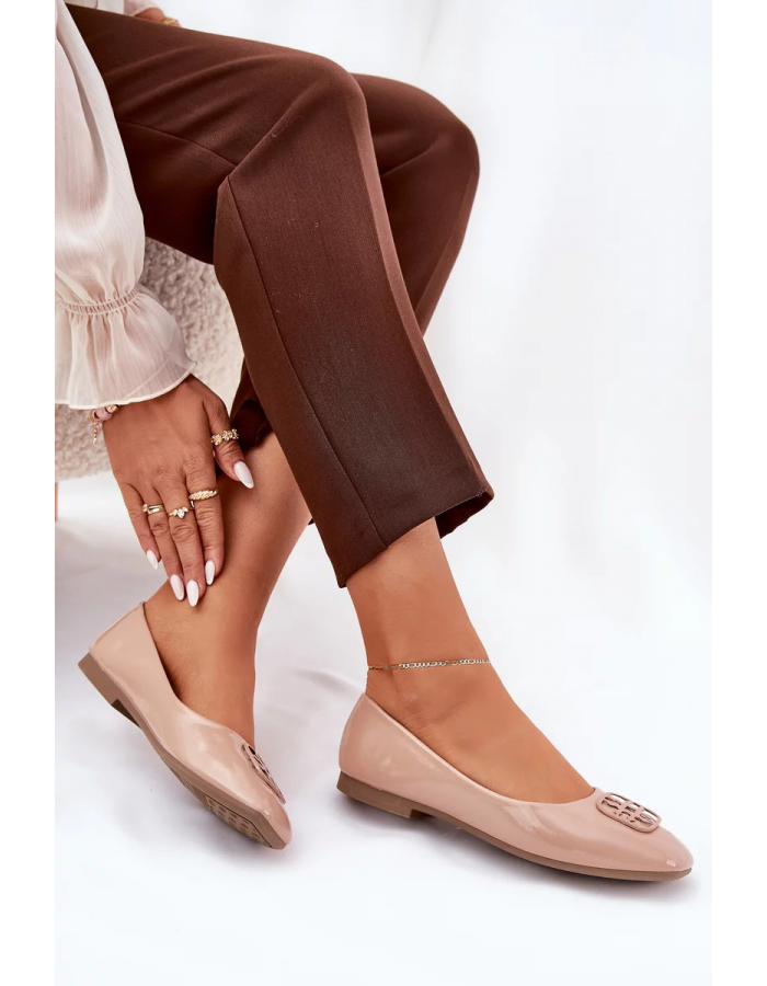 Béžové lakované baleríny Vinceza doporučujeme kombinovat s neutrálními nebo pastelovými outfity, aby dekorativní detail vynikl.