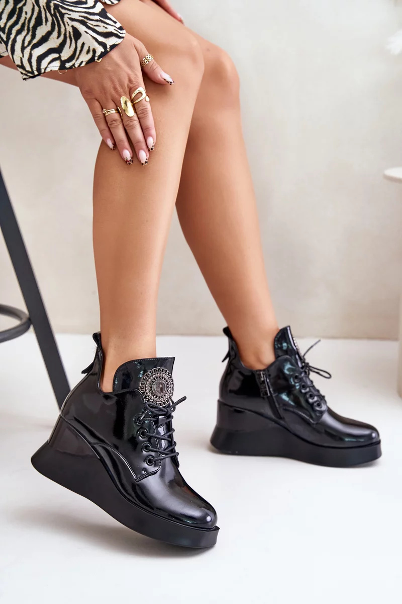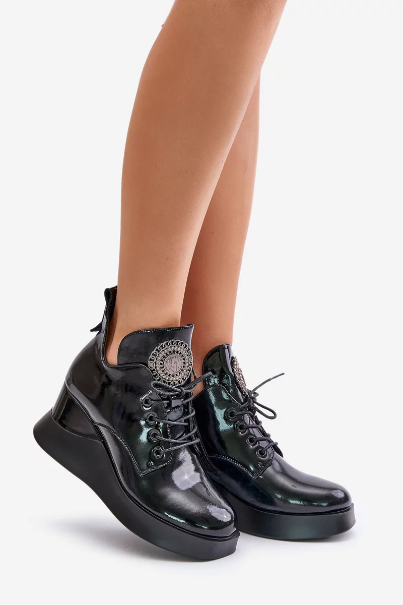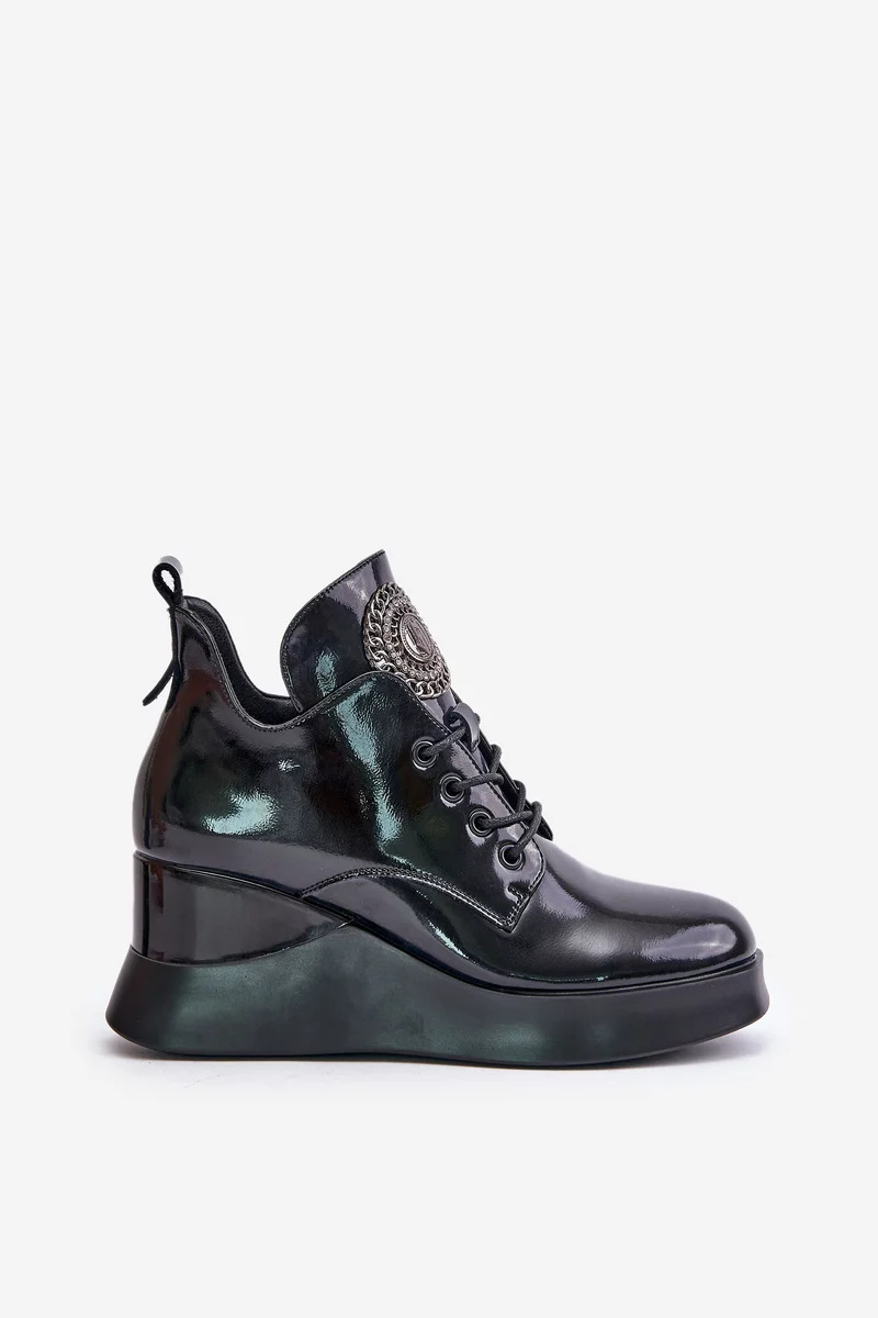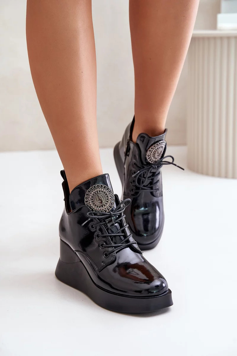 Dámské kotníkové boty vyrobené z přírodní kůže, osazené na stylovém klínku a platformě, spojují módu a pohodlí.
