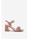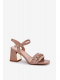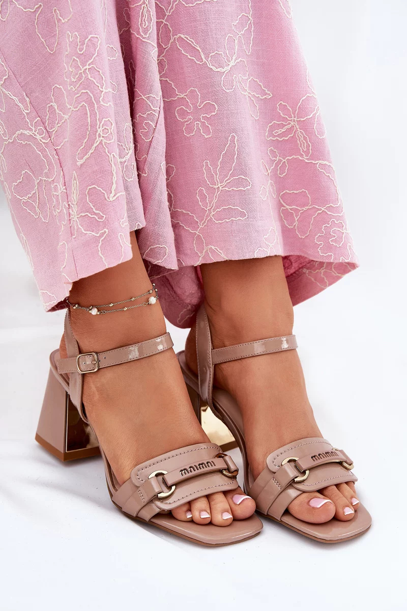 Elegantní dámské sandály Mevonelle z pravé lakované kůže v béžovém odstínu. Stabilní sloupek poskytuje pohodlí při chůzi a elegantní vzhled. Pásek kolem kotníku s přezkou zajišťuje bezpečné a pevné nošení. Ideální volba pro slavnostní a společenské příležitosti.