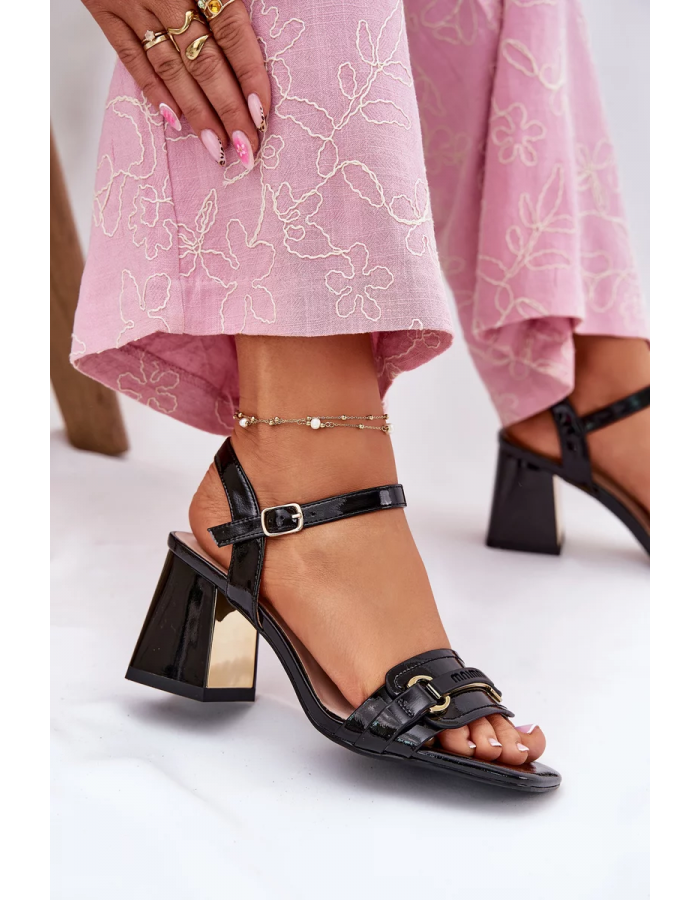 Elegantní dámské sandály Mevonelle z pravé lakované kůže v černém odstínu. Stabilní sloupek poskytuje pohodlí při chůzi a zároveň elegantní vzhled. Pásek kolem kotníku s přezkou zajišťuje bezpečné a pevné nošení. Ideální volba pro slavnostní a společenské příležitosti.