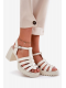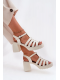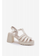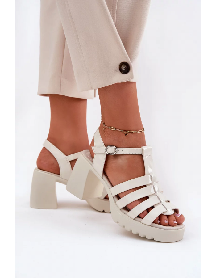 Elegantní dámské sandály Vinceza z pravé lakované kůže v jemném jasnobéžovém odstínu. Stabilní sloupek zajišťuje pohodlnou chůzi a elegantní vzhled, zatímco pásek kolem kotníku s přezkou poskytuje bezpečné a pevné nošení. Ideální volba pro slavnostní a společenské příležitosti.