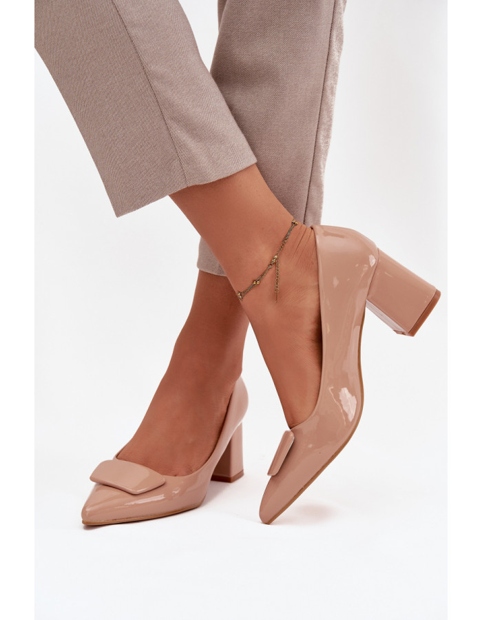 Elegantní dámské lodičky Isoline v nude odstínu s lakovaným povrchem a jemnou dekorativní ozdobou. Stabilní blokový podpatek zajišťuje pohodlí při chůzi i delším stání. Nadčasová nude barva se snadno kombinuje s mnoha outfity a dodává každému vzhledu jemný a sofistikovaný akcent.