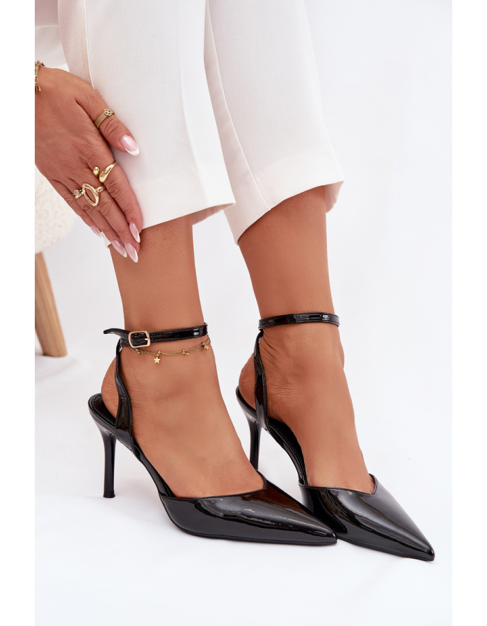 Elegantní dámské lodičky Laretta z lakované eko kůže v černém provedení s otevřenou patou. Jehlový podpatek dodává sofistikovaný a ženský vzhled, zatímco pohodlná stélka a otevřená špička zajišťují komfortní nošení. Ideální volba pro slavnostní, společenské i večerní příležitosti.
