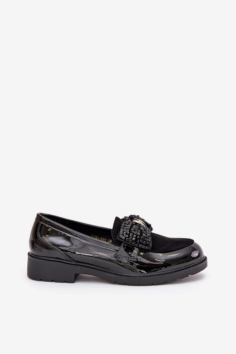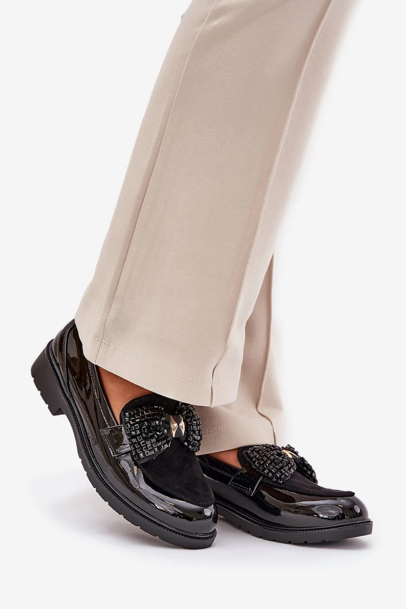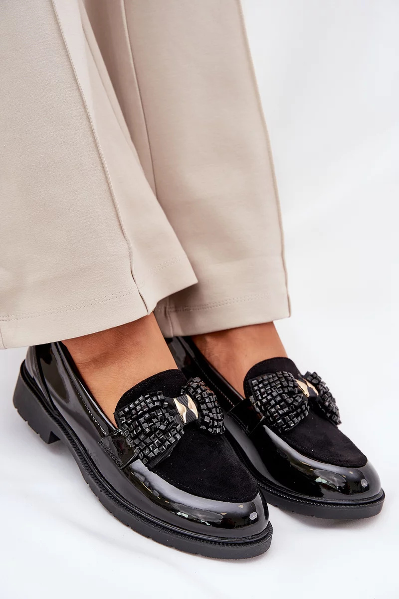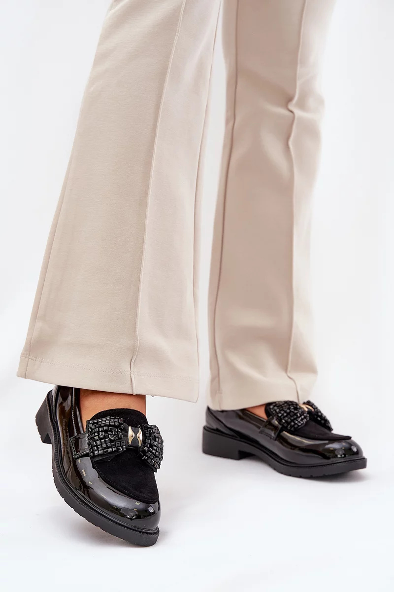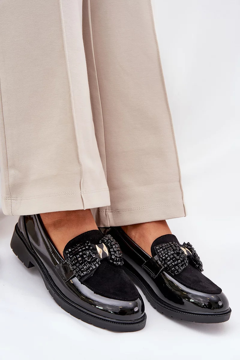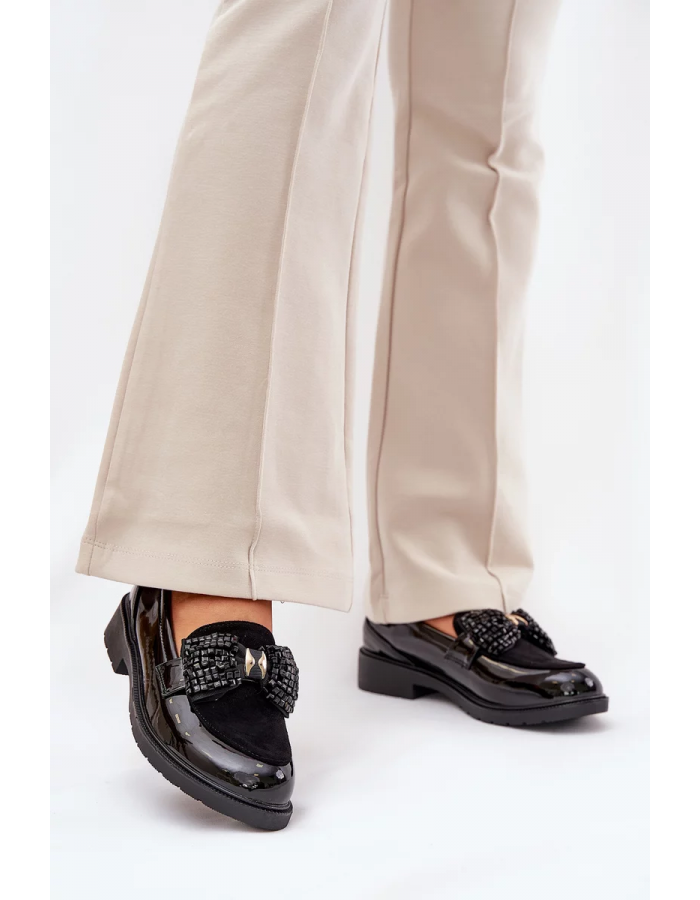 Elegantní černé mokasíny S.Barski z lakované kůže kombinují pohodlí s jemně zdobeným designem. Plochá podrážka a měkký materiál zajišťují komfort po celý den, zatímco dekorativní mašle dodává botám sofistikovaný a ženský vzhled. Ideální volba pro ženy, které chtějí spojit styl a pohodlí.