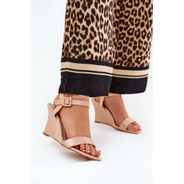 Stylové dámské sandály Vliraya v lakovaném nude provedení. Stabilní klín zajišťuje pohodlnou chůzi a elegantní vzhled. Pásek kolem kotníku s přezkou poskytuje bezpečné a pevné nošení. Ideální volba pro slavnostní, společenské i každodenní letní outfity.