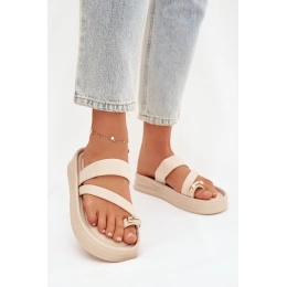 Dámské látkové pantofle Farielle ve světle béžovém provedení zaujmou jemným a elegantním designem s pásky doplněnými o zlatý detail, který dodává obuvi sofistikovaný akcent. Lehký textilní svršek je příjemný na nošení, zatímco světlý neutrální odstín působí svěže a nadčasově a snadno se kombinuje s letními outfity.