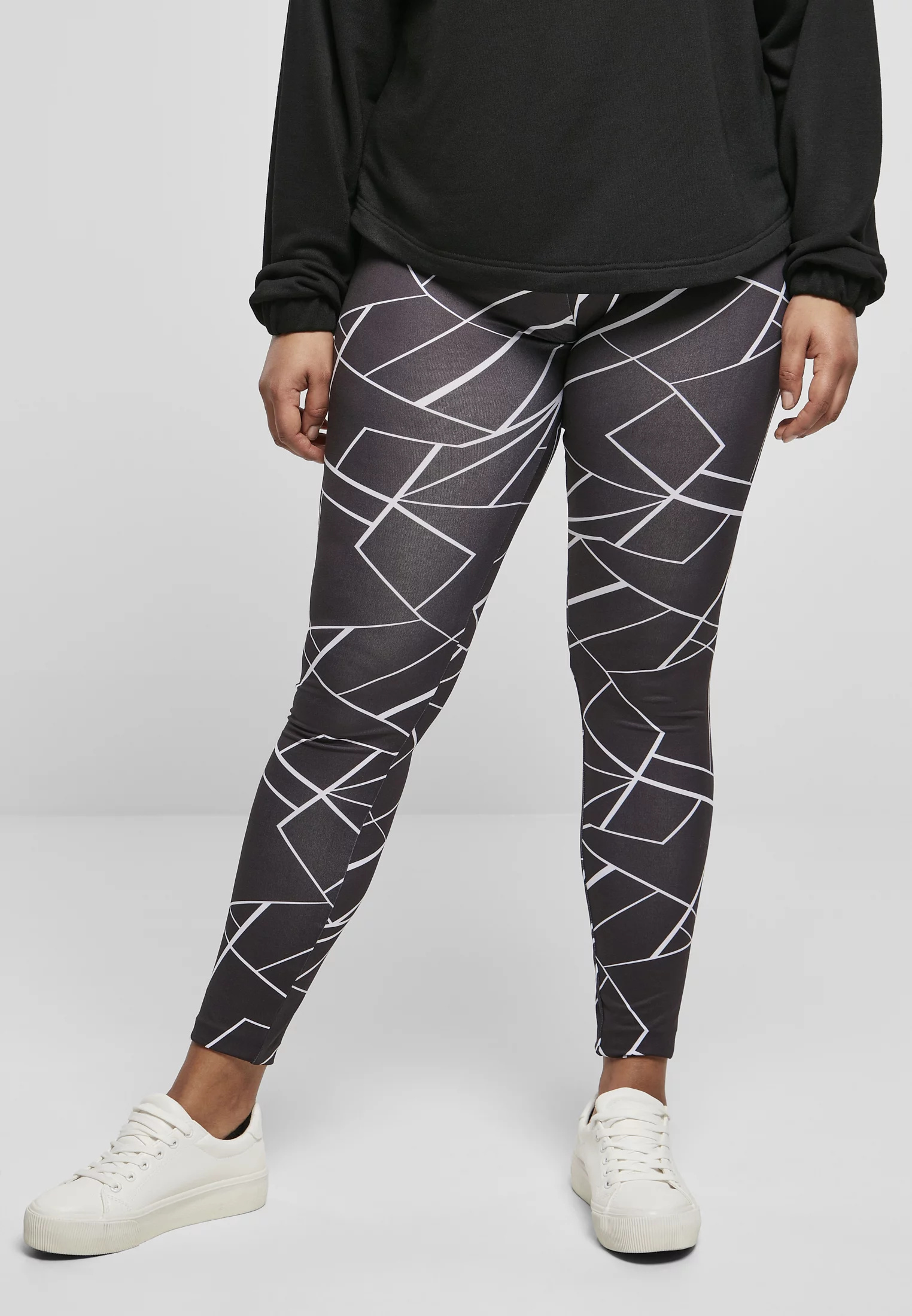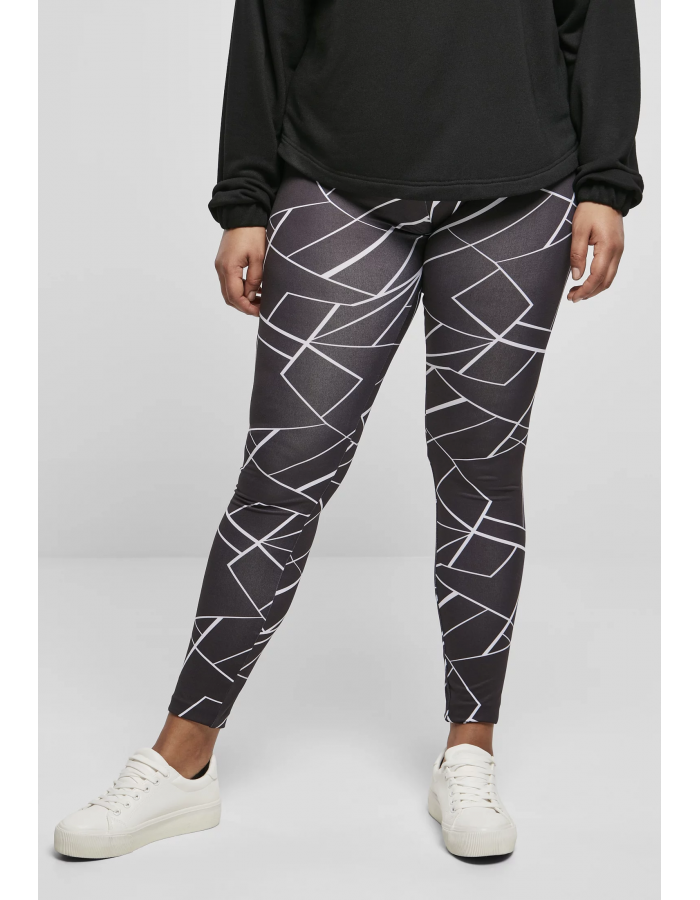 Dámské legíny AOP geometrické černé XXL