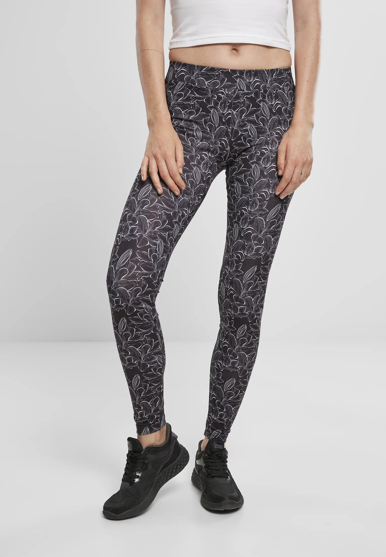 Dámské legíny AOP ibišek černé M