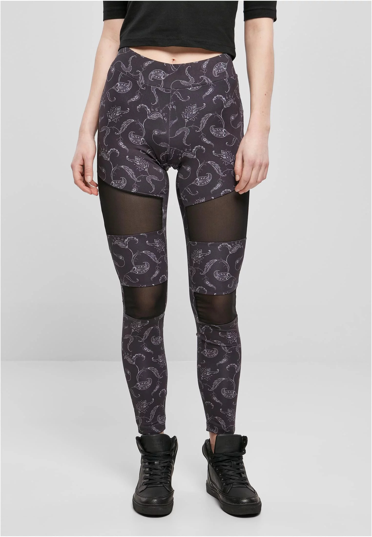 Tyto dámské legíny nepochybně představují funkční a poutavé městské oblečení v celé své kráse. Nabízejí efektní celoplošný potisk a sportovní síťované vsadky na stehnech a pod koleny. Pružná strečová žerzejová tkanina dámských kalhot spolu s použitým funkčním mesh materiálem zajišťuje dokonalý komfort nošení. Atraktivní legíny jsou střiženy do pasu a padnou jako druhá kůže.
