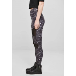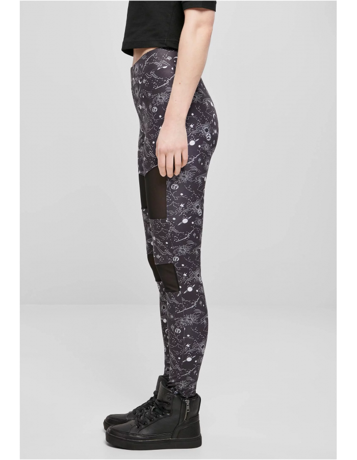 Tyto dámské legíny nepochybně představují funkční a poutavé městské oblečení v celé své kráse. Nabízejí efektní celoplošný potisk a sportovní síťované vsadky na stehnech a pod koleny. Pružná strečová žerzejová tkanina dámských kalhot spolu s použitým funkčním mesh materiálem zajišťuje dokonalý komfort nošení. Atraktivní legíny jsou střiženy do pasu a padnou jako druhá kůže.