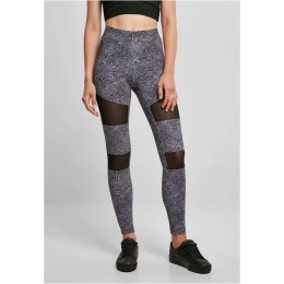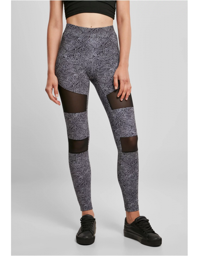 Tyto dámské legíny nepochybně představují funkční a poutavé městské oblečení v celé své kráse. Nabízejí efektní celoplošný potisk a sportovní síťované vsadky na stehnech a pod koleny. Pružná strečová žerzejová tkanina dámských kalhot spolu s použitým funkčním mesh materiálem zajišťuje dokonalý komfort nošení. Atraktivní legíny jsou střiženy do pasu a padnou jako druhá kůže.