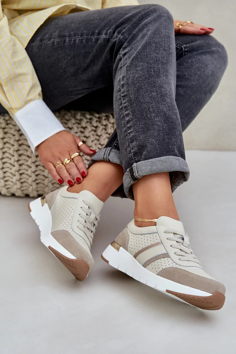 Lehké béžové sneakersy skvěle doplní outfit s džínami, lněnými kalhotami nebo letními šaty a podtrhnou přirozený, uvolněný styl.