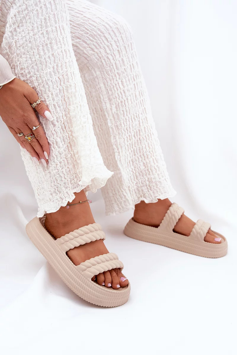 Dámské pantofle S.Barski ZK51-001 jsou vyrobené z lehkého pěnového materiálu, který je příjemný na nošení a dobře tlumí došlap. Zvýšená platforma dodává moderní vzhled a zároveň přispívá k pohodlí při chůzi. Béžové provedení je nadčasové a snadno kombinovatelné, takže pantofle využijete doma i během letních dnů venku.
