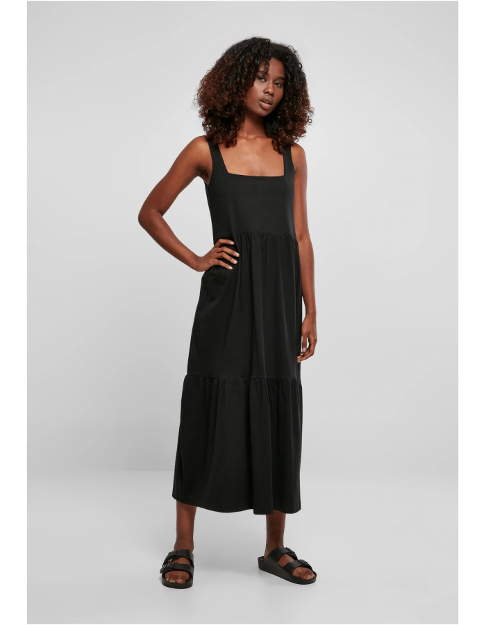 Lehké letní šaty v trendy střihu. Vzadu a vepředu nabízí dámské šaty hluboký, hranatý lodičkový výstřih a pohodlná široká ramínka. Od pasu na dvouřadé volánové vsadky spadají do hravých, velkých skladů. Šaty volného střihu mají 7/8 délku a jsou vyrobeny z bavlny šetrné k pokožce, která je prostě radost nosit.