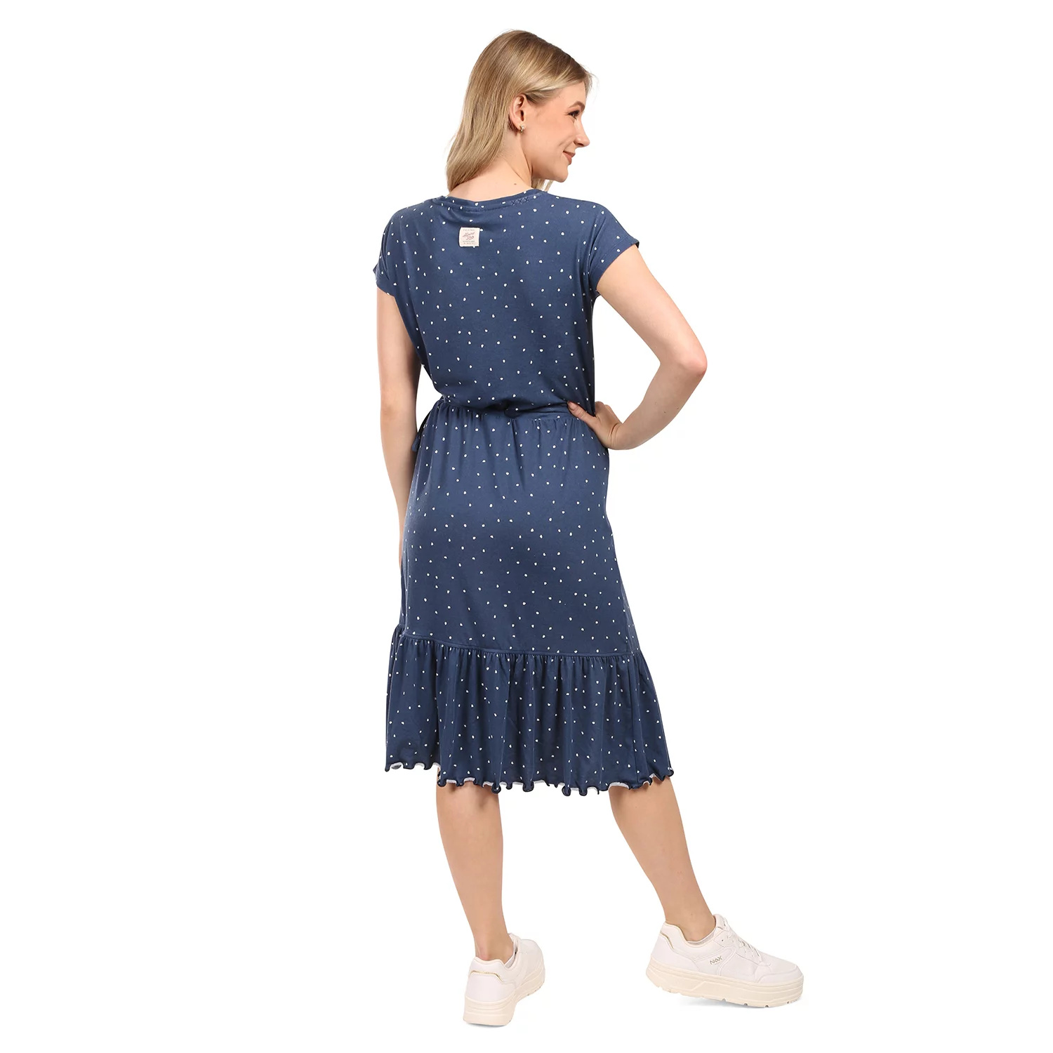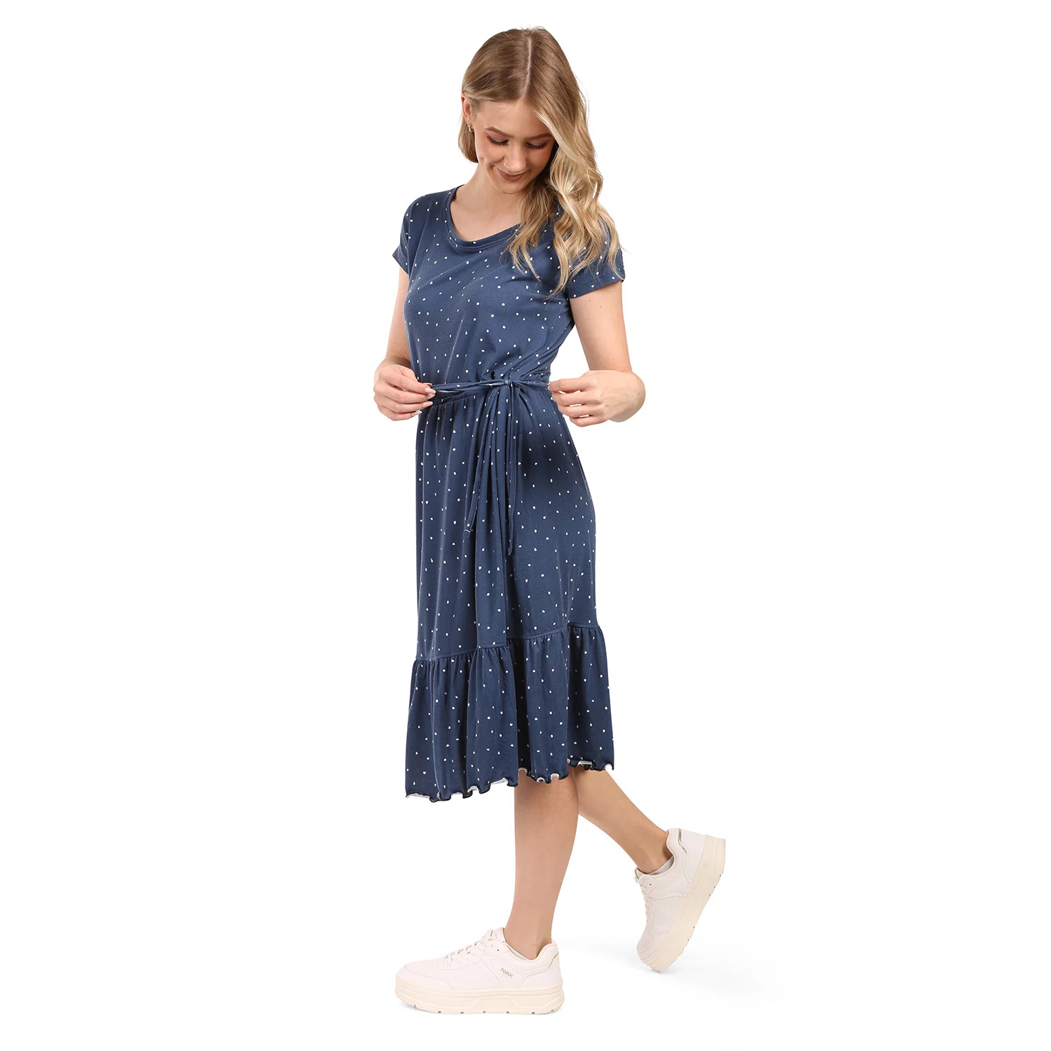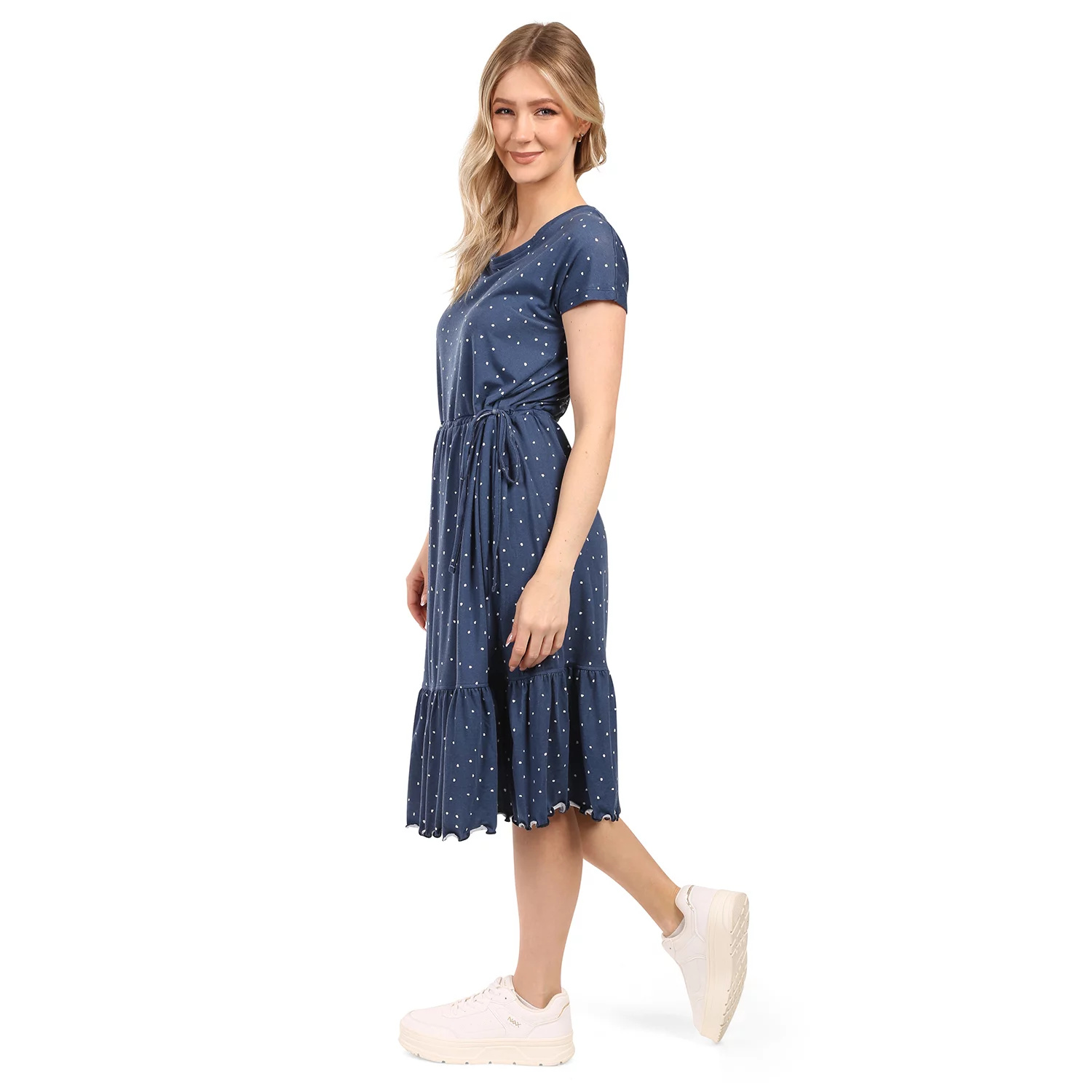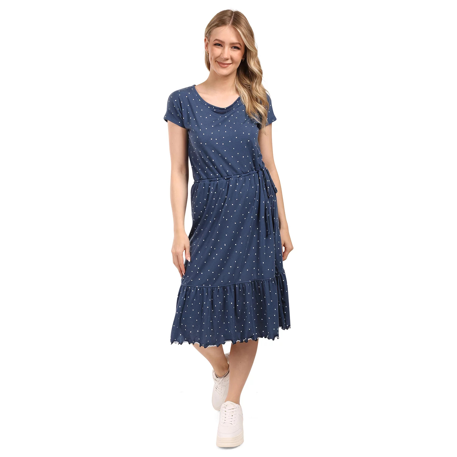 Díky volnějšímu střihu se šaty krásně přizpůsobí postavě a jsou ideální pro letní dny. Šaty mají krátké rukávy a jejich délka sahá pod kolena, což jim dodává elegantní vzhled.