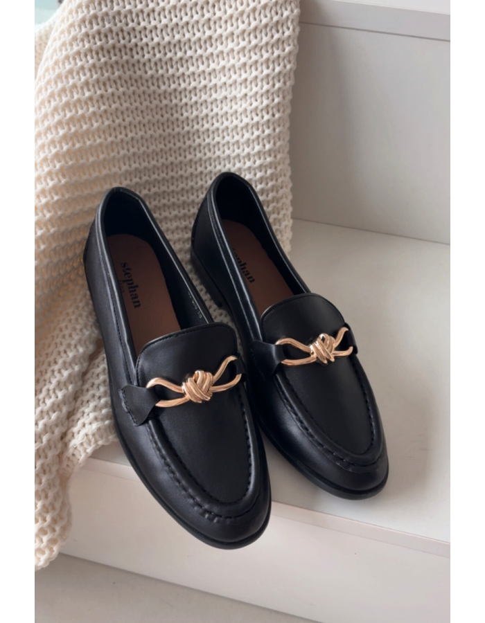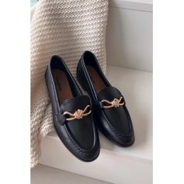 Černé loafersy s ozdobou skvěle doplní outfity s neutrálními barvami – zkombinujte je s béžovými kalhotami, šaty nebo denimem pro elegantní a moderní look.