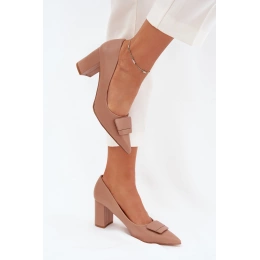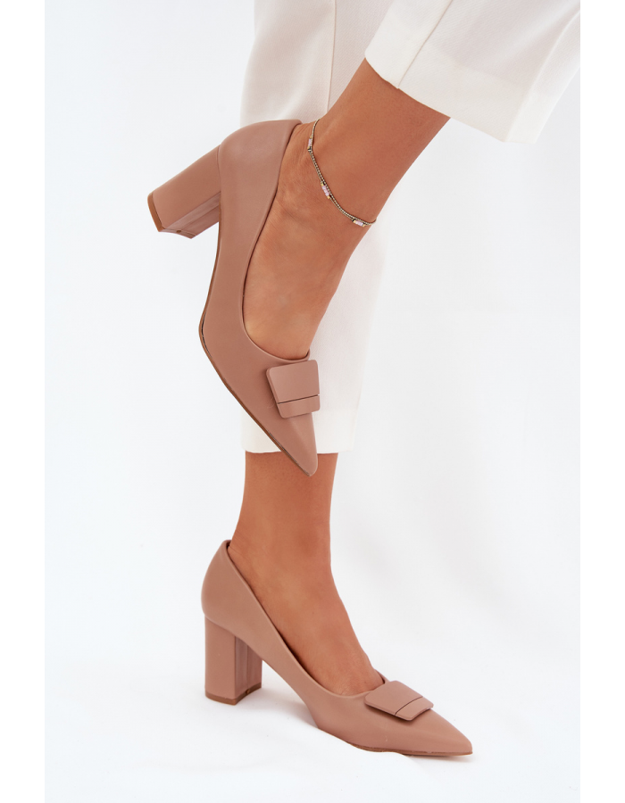 Elegantní dámské lodičky Celira v tmavě béžovém odstínu zaujmou stylovou dekorativní ozdobou na špičce. Široký blokový podpatek poskytuje stabilitu a pohodlí při chůzi, zatímco měkká stélka zajišťuje komfort i při celodenním nošení. Tmavě béžový odstín je univerzální a snadno kombinovatelný s různými outfity – od pracovních po slavnostní.