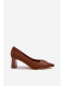 Dámské lodičky Seriva v hnědém provedení zaujmou elegantním designem doplněným o výraznou ozdobnou přezku, která dodává obuvi sofistikovaný a stylový vzhled. Stabilní sloupkový podpatek zajišťuje pohodlí a jistý došlap, zatímco hnědá barva působí teple a nadčasově. Model je ideální volbou pro ženy, které hledají elegantní, ale zároveň komfortní obuv.