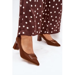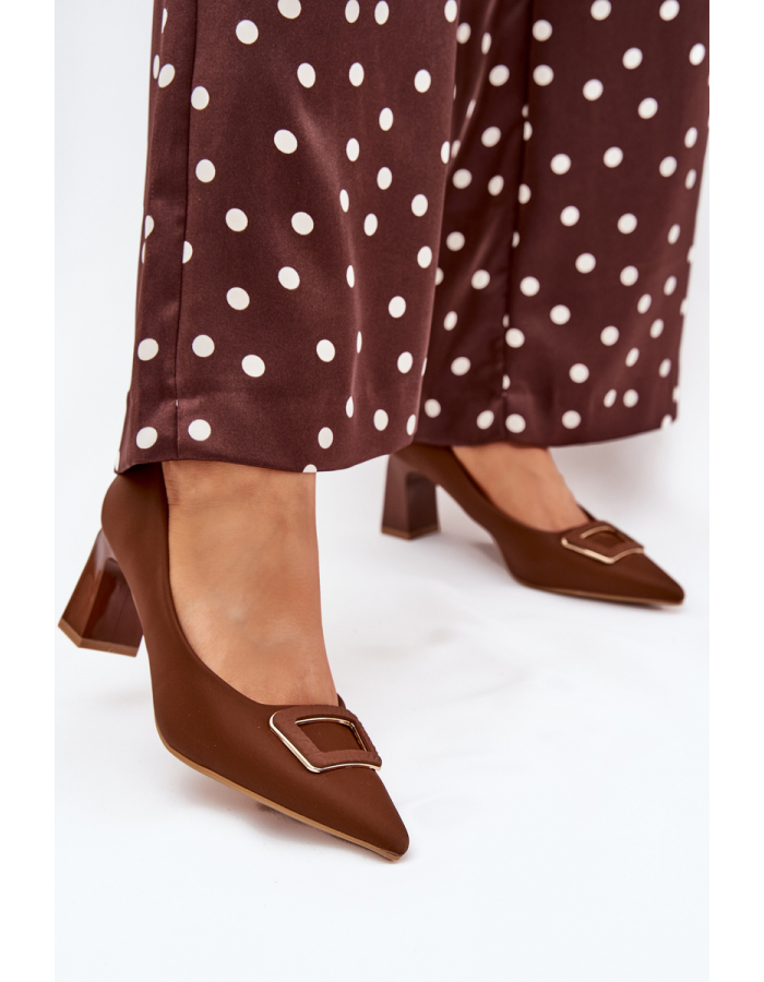 Hnědé lodičky s ozdobnou přezkou krásně doplní outfity v béžových, krémových nebo zemitých tónech a dodají jim elegantní akcent.